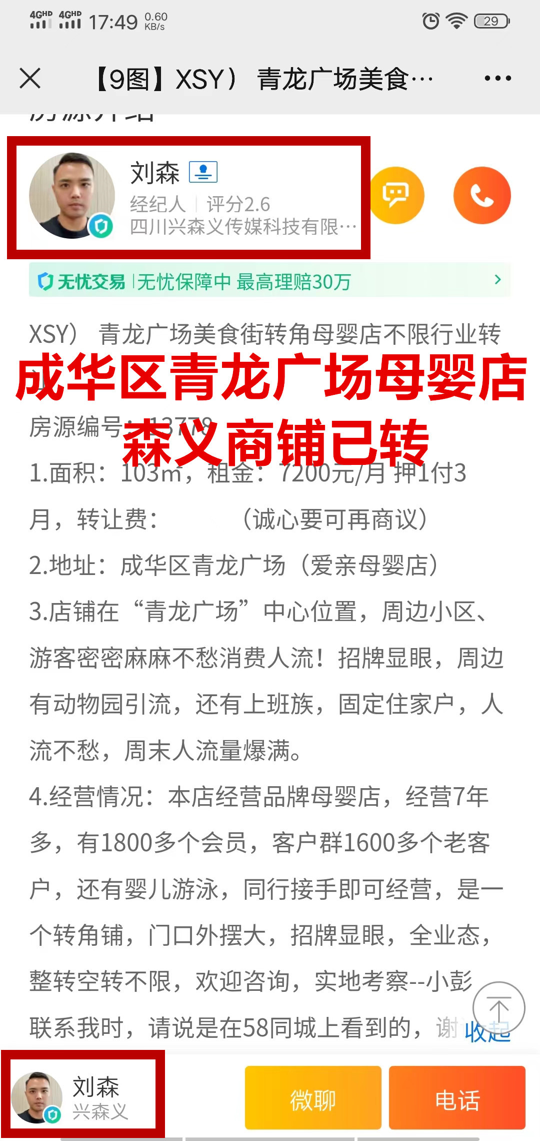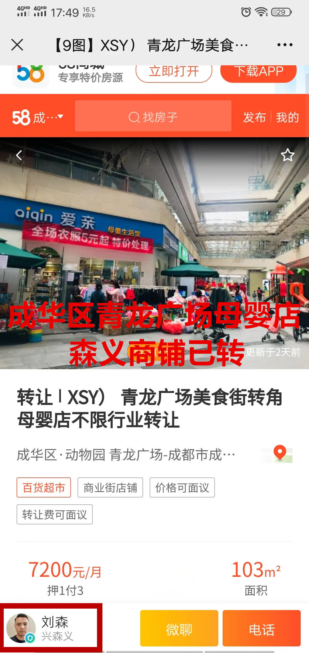 成华区青龙广场母婴店已转让