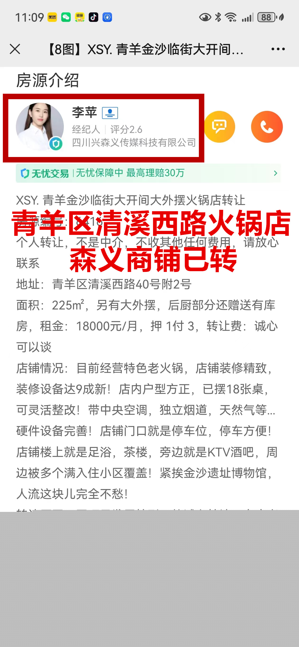 青羊区清溪西路火锅店已转让