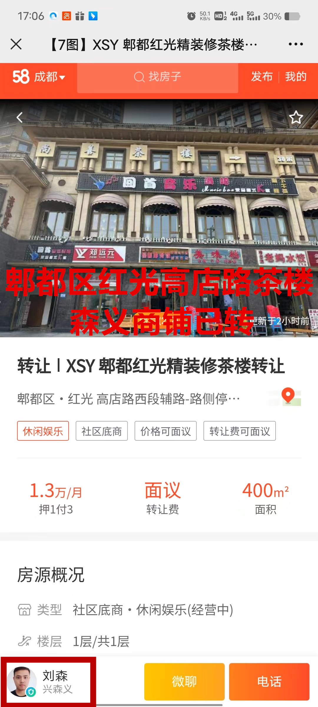 郫都区高店路西段茶楼已转让