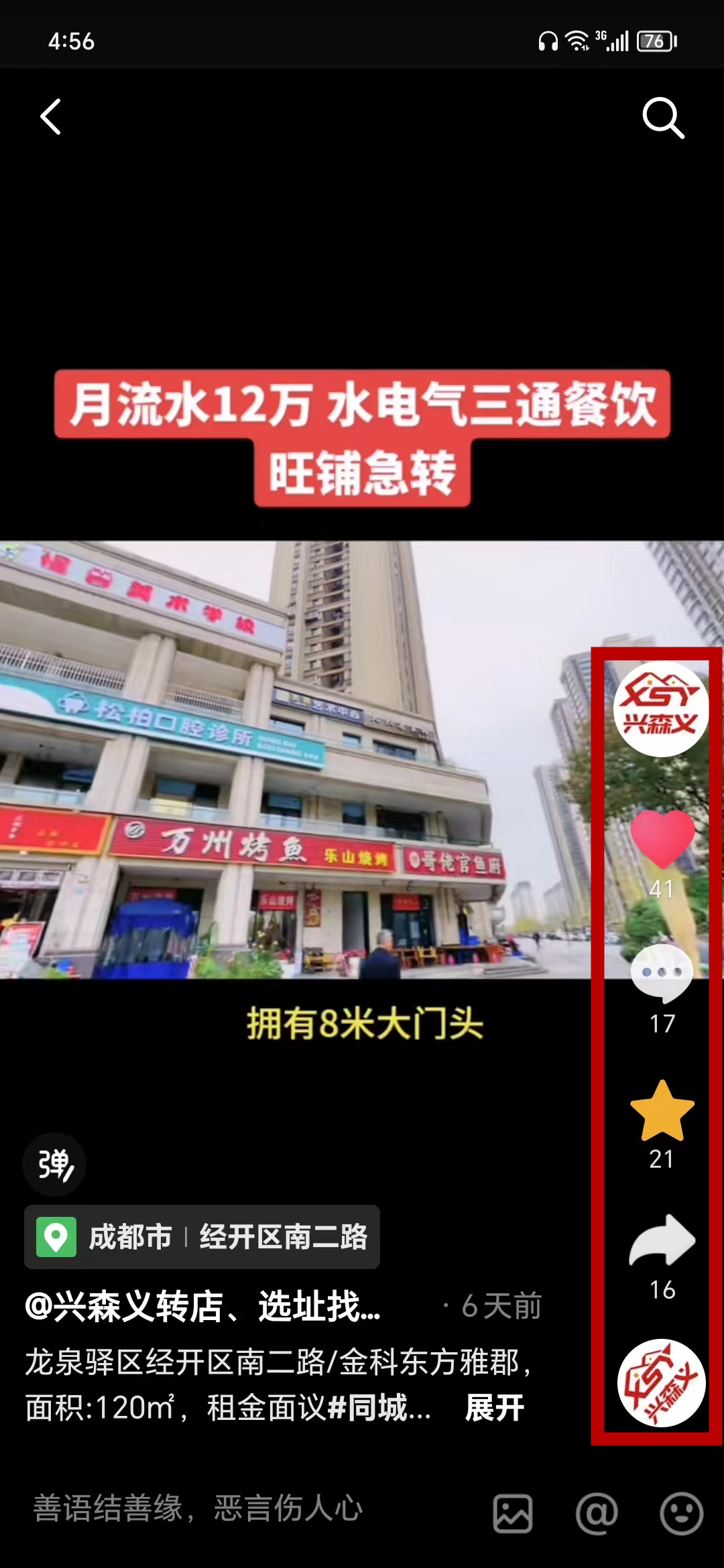 龙泉驿区经开区南二路/金科东方雅郡餐饮店已转让