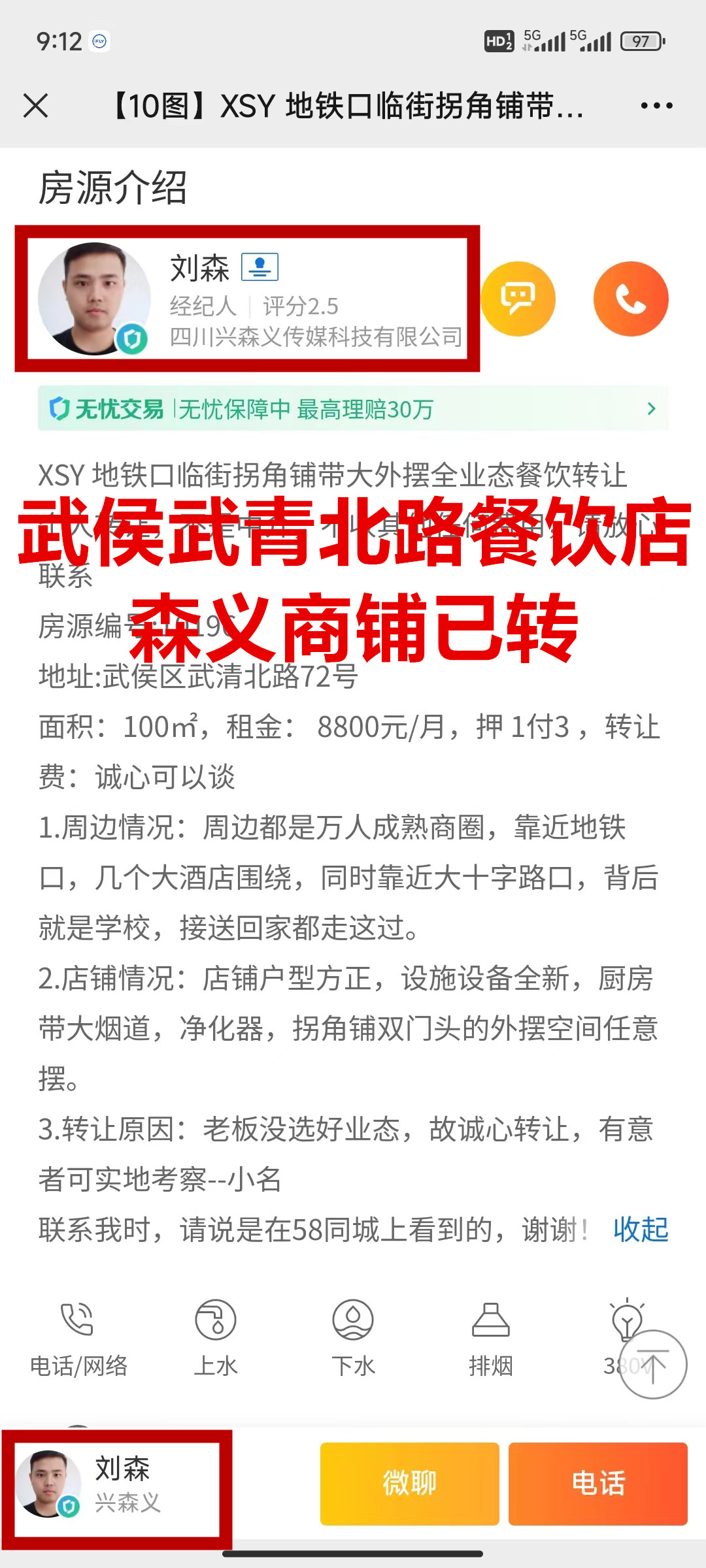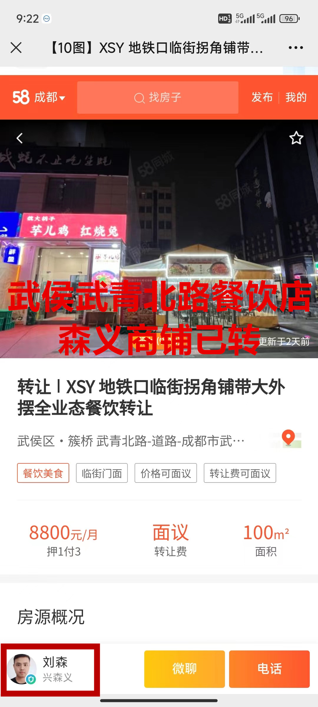 武侯武青北路餐饮店已转让