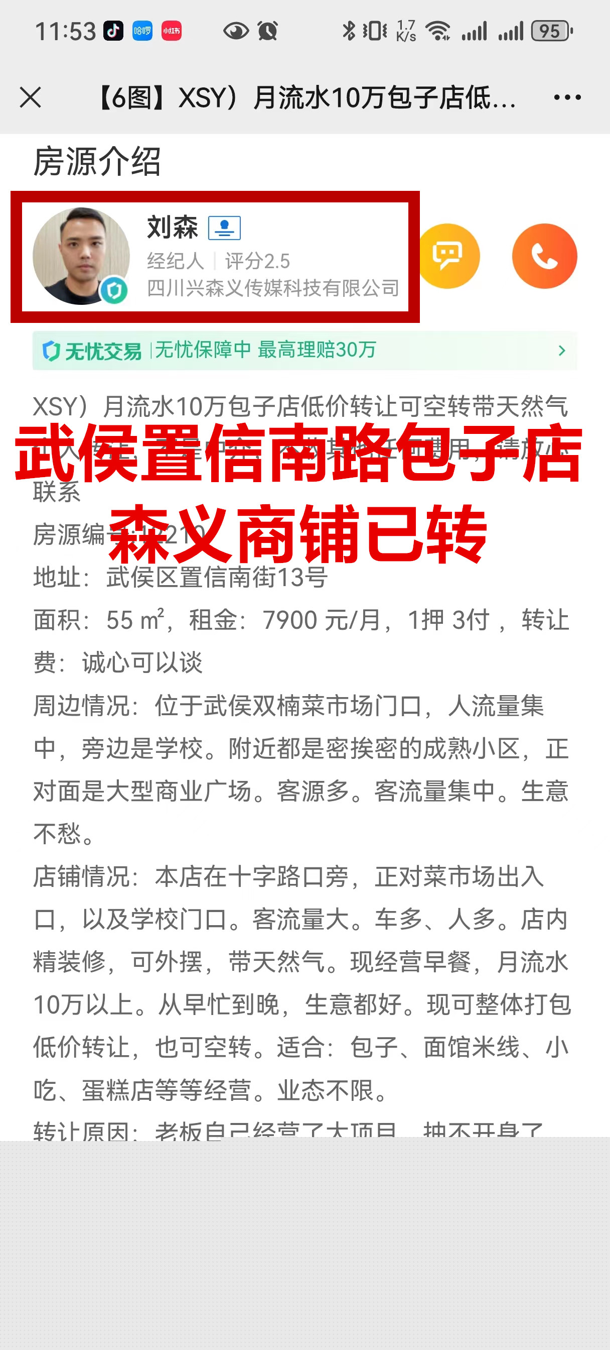 武侯区置信南街包子店已转让