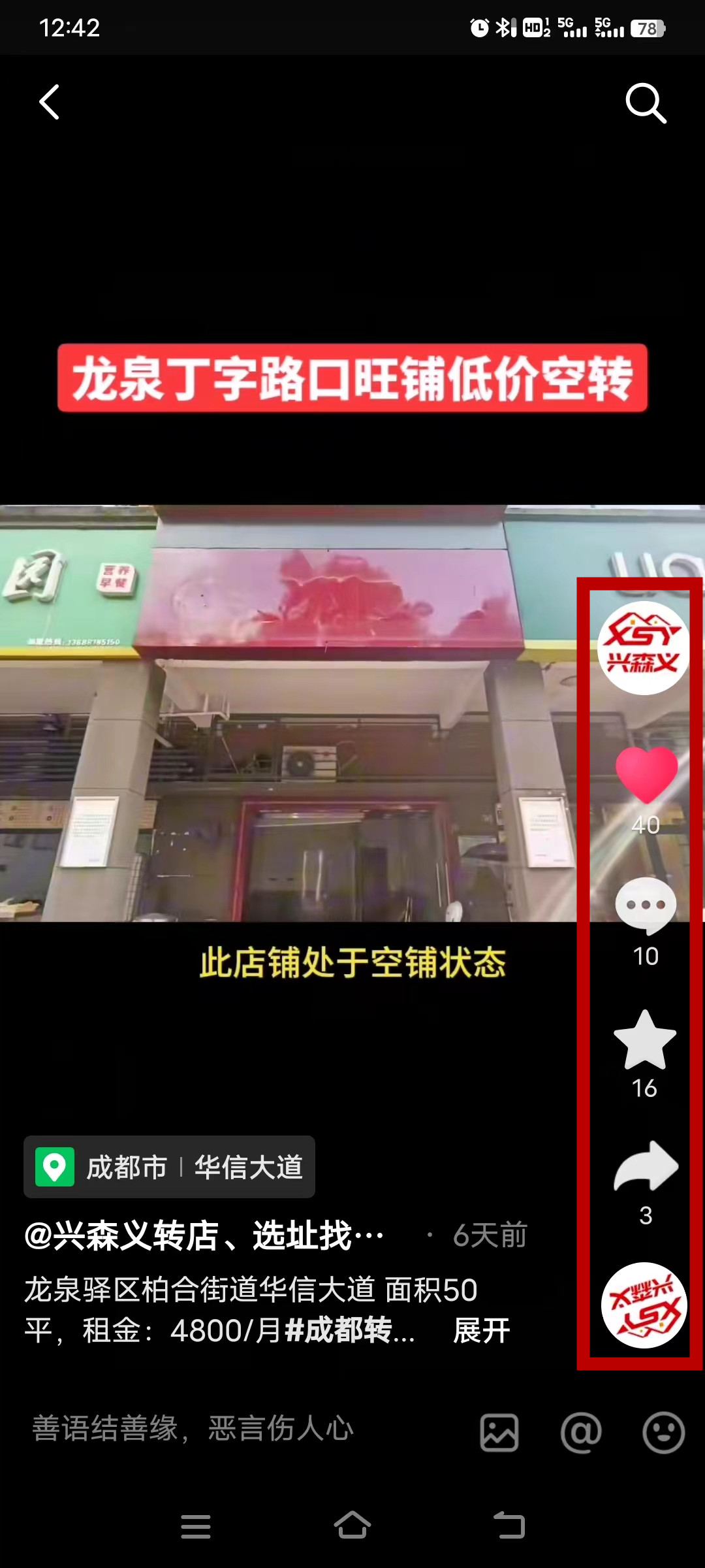 龙泉驿区柏合街道华信大道旺铺已转让