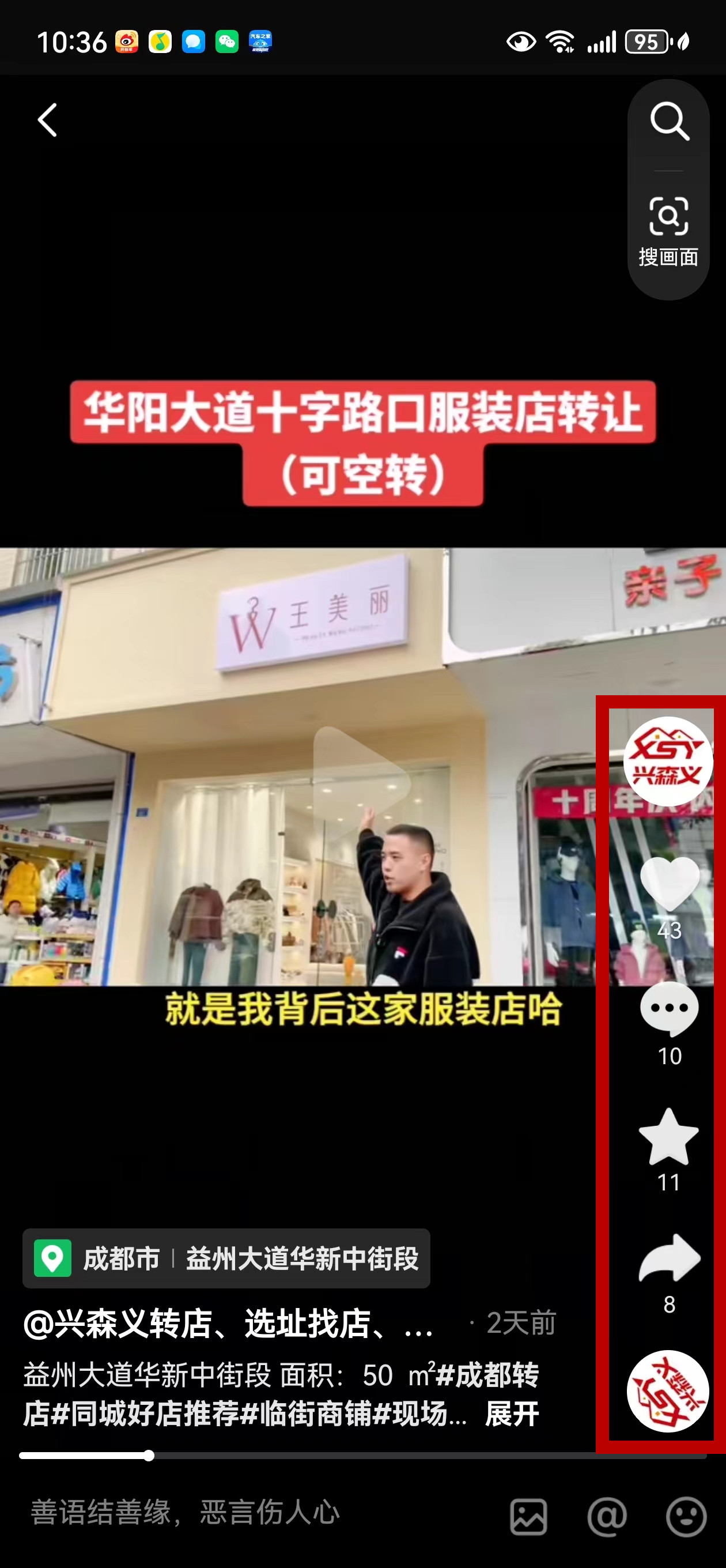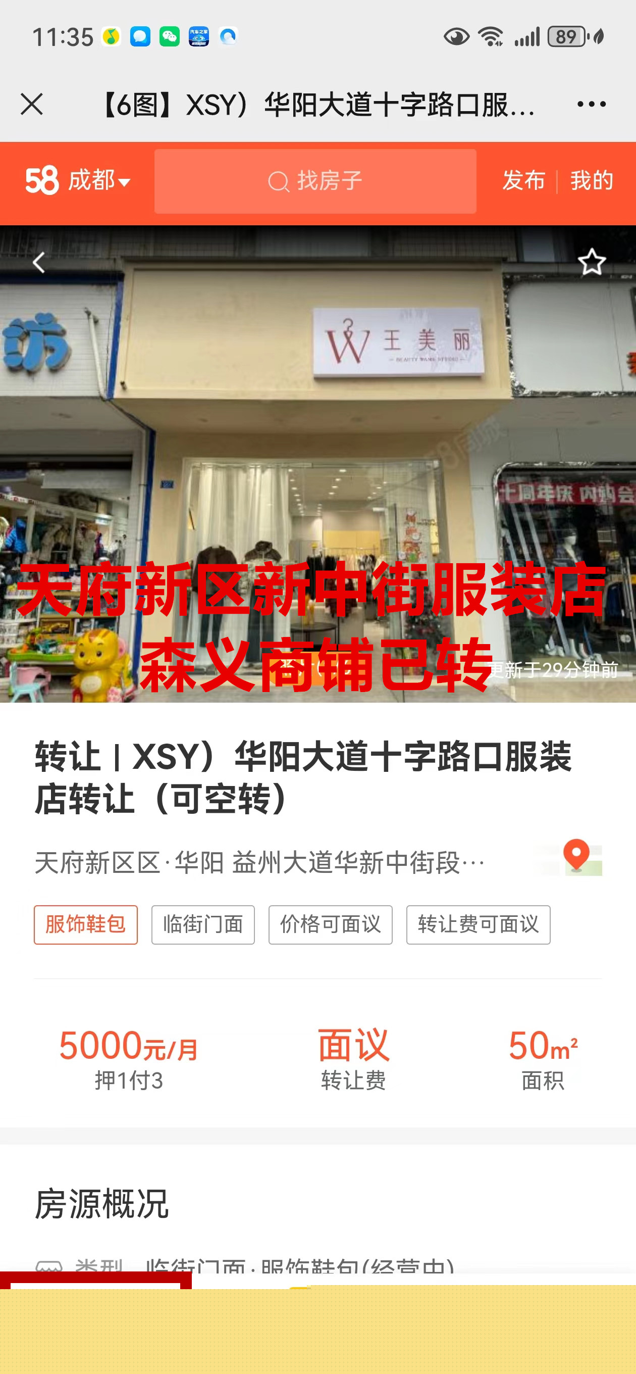 益州大道华新中街段服装店已转让