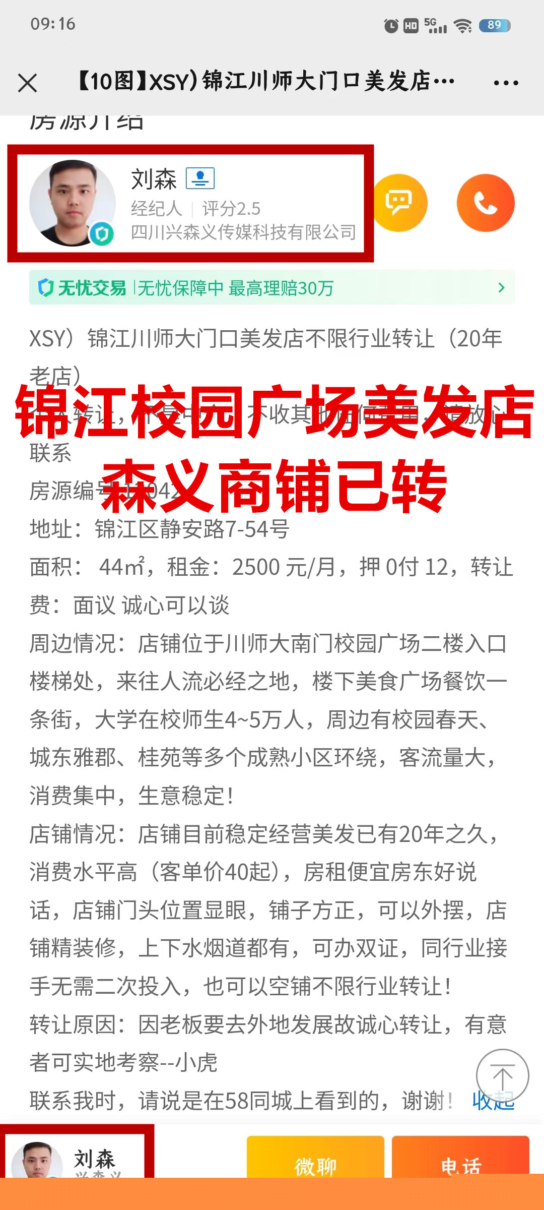 锦江区静安路美发店已转让