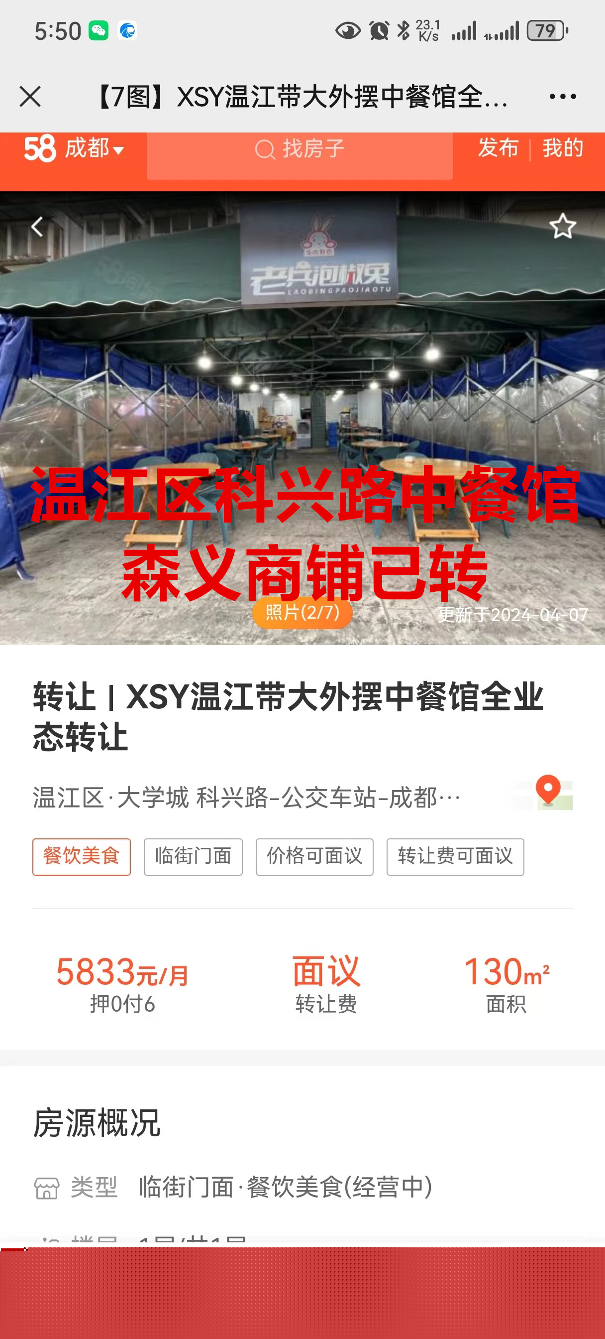 温江区科兴路中餐馆已转让