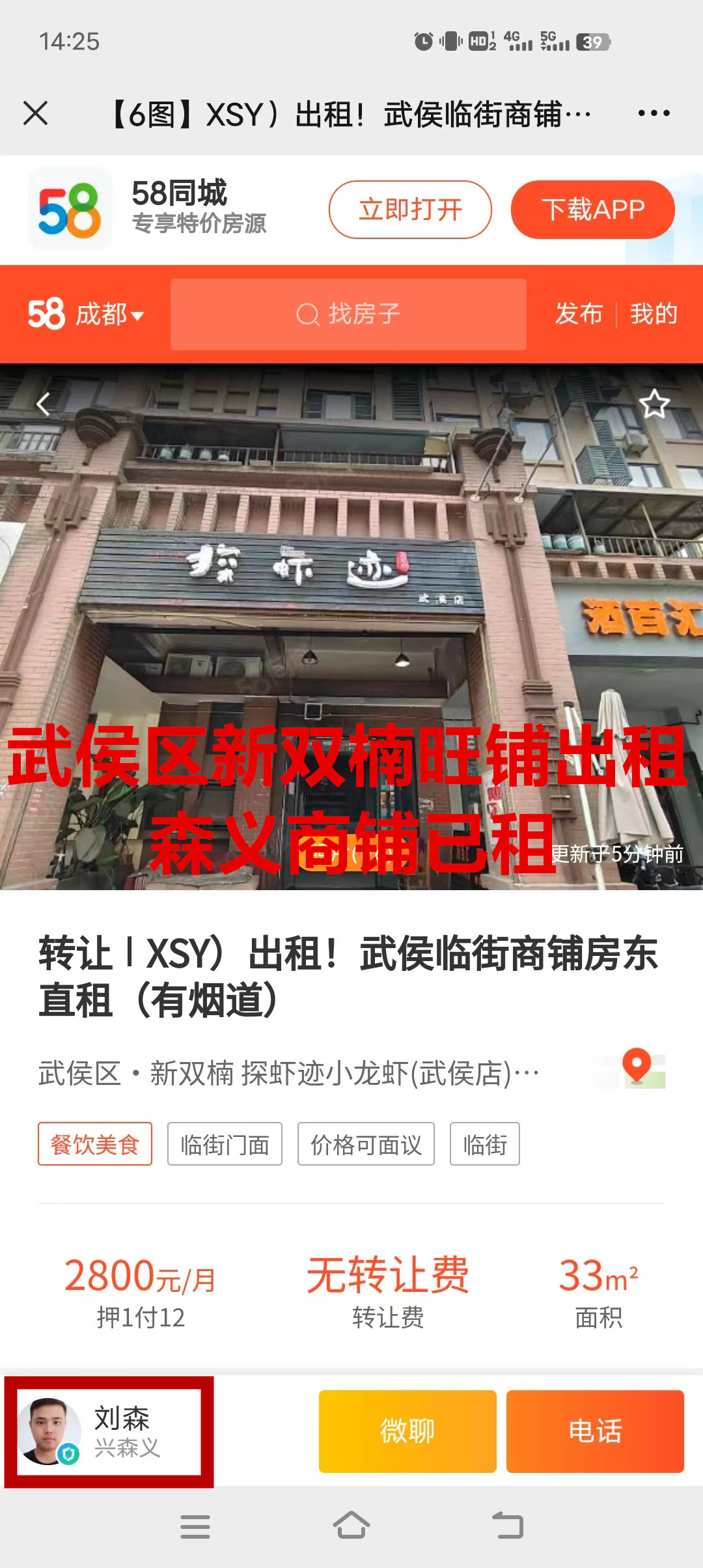 武侯区聚萃路旺铺已出租