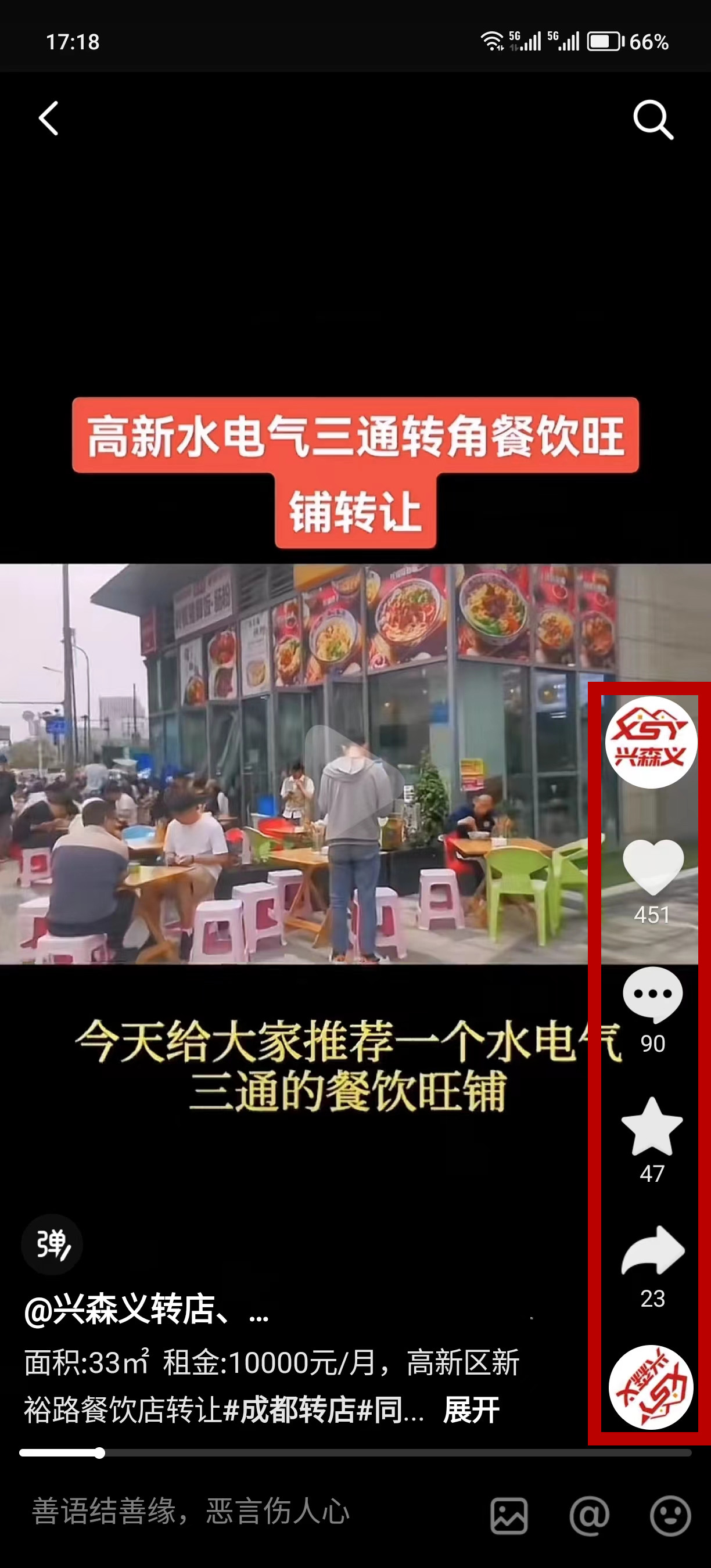 高新区新裕路餐饮店已转让