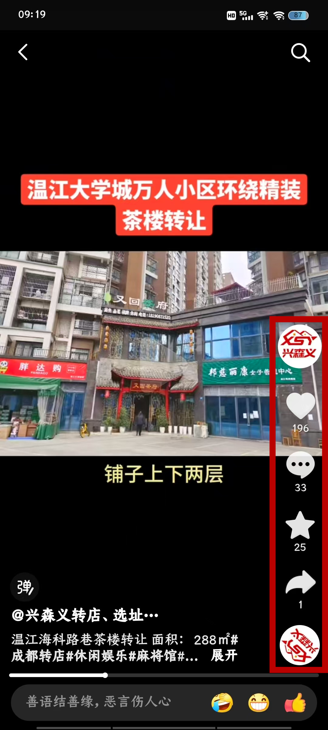 温江海科路巷茶楼已转让