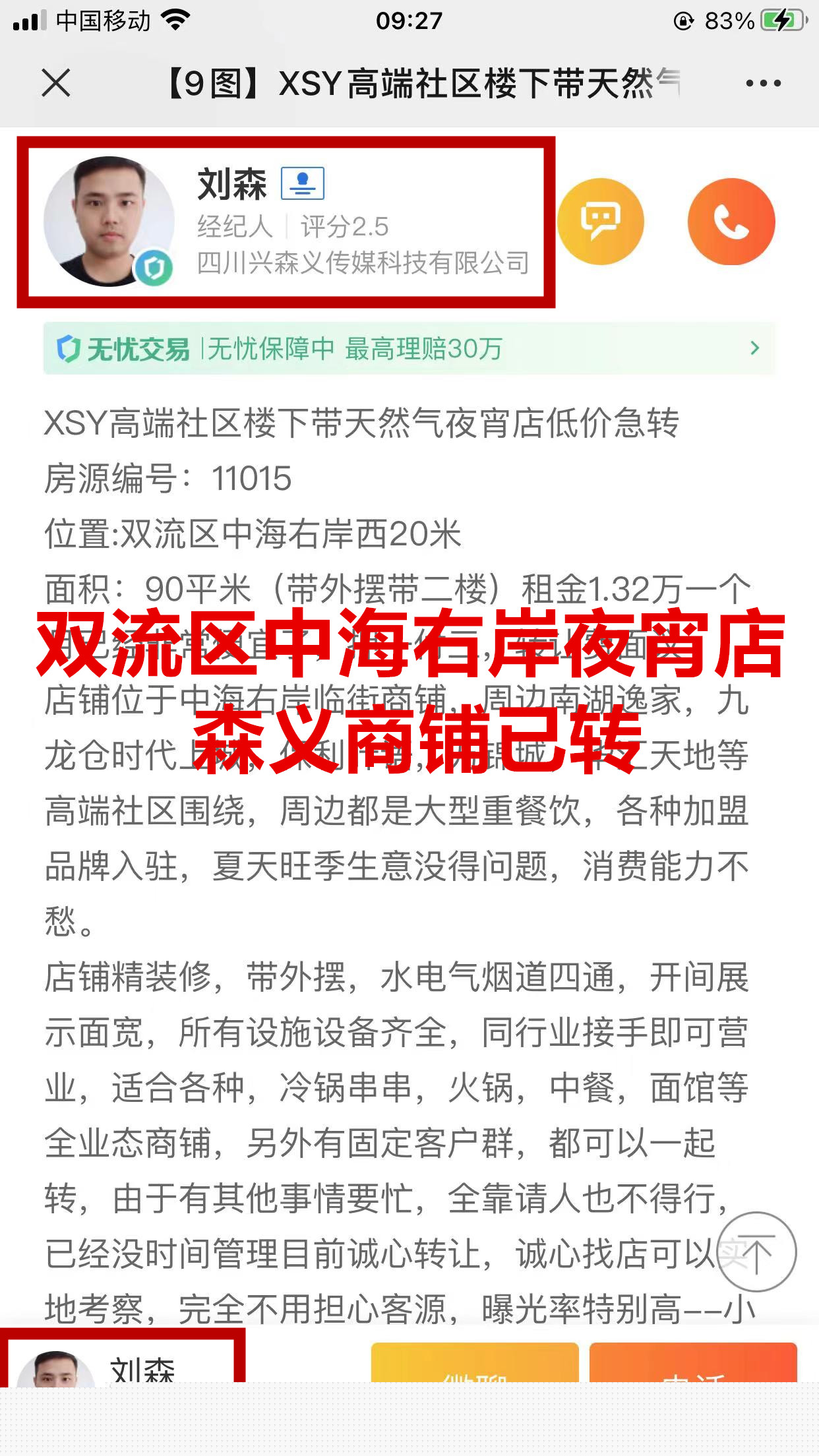 双流区中海右岸西夜宵店已转让