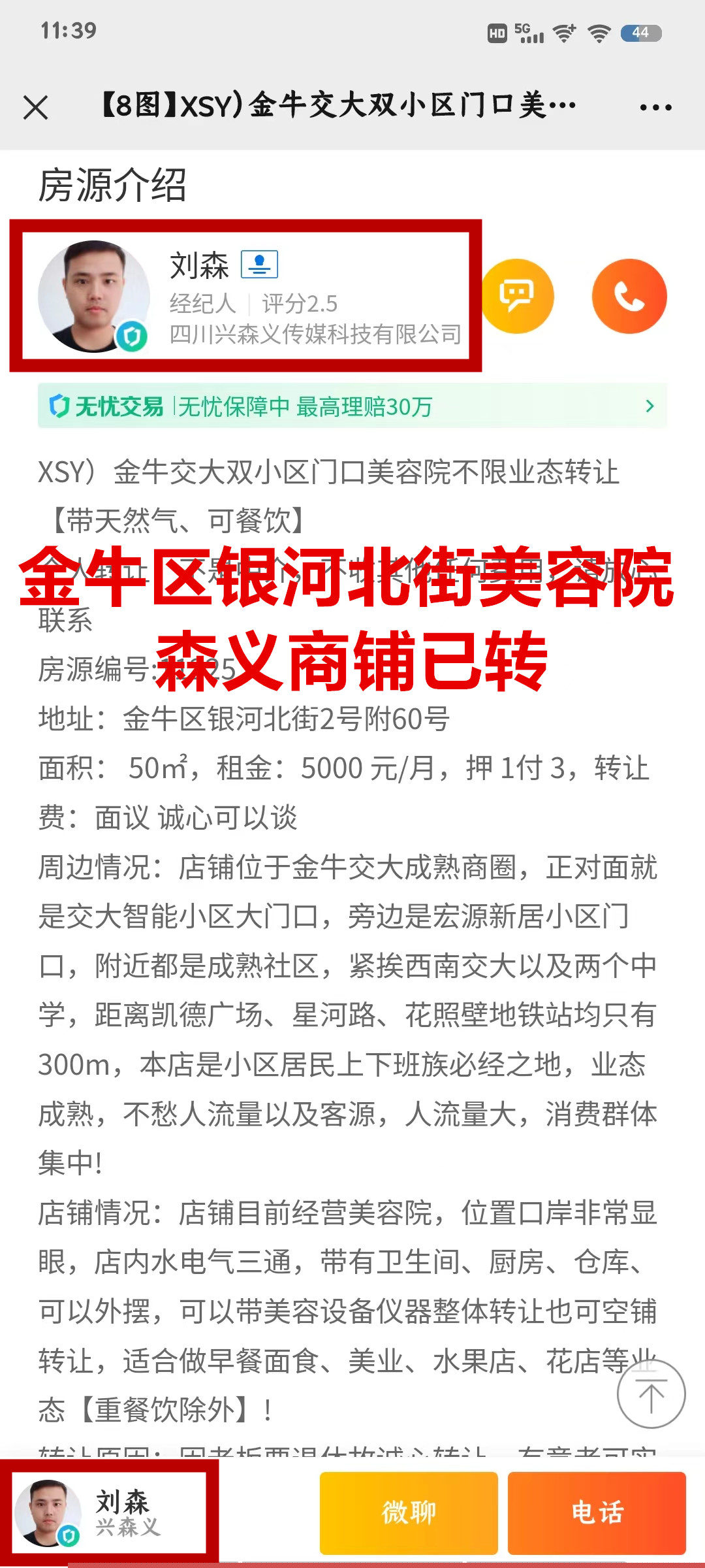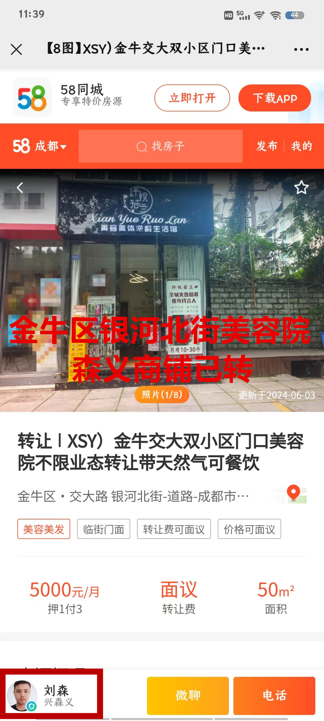 金牛区银河北街美容院已转让