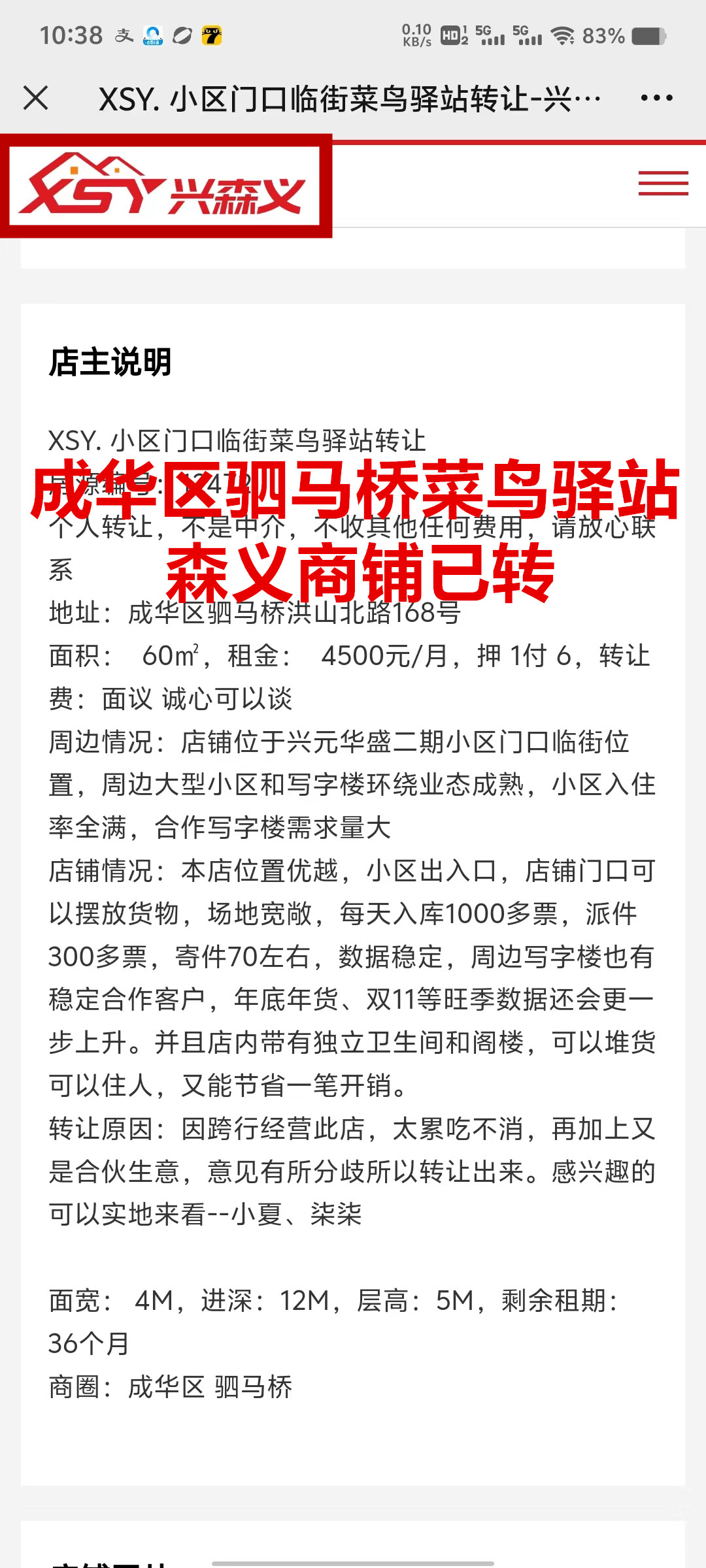 成华区驷马桥洪山北路菜鸟驿站已转让