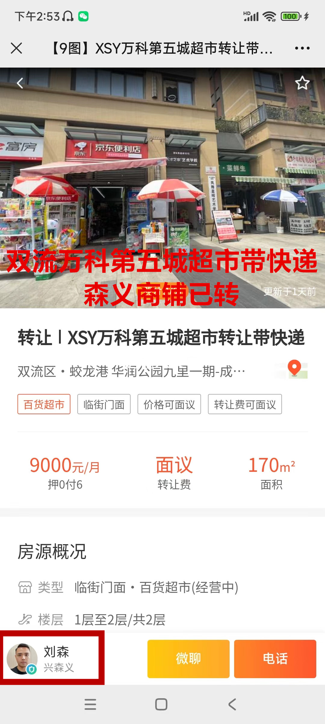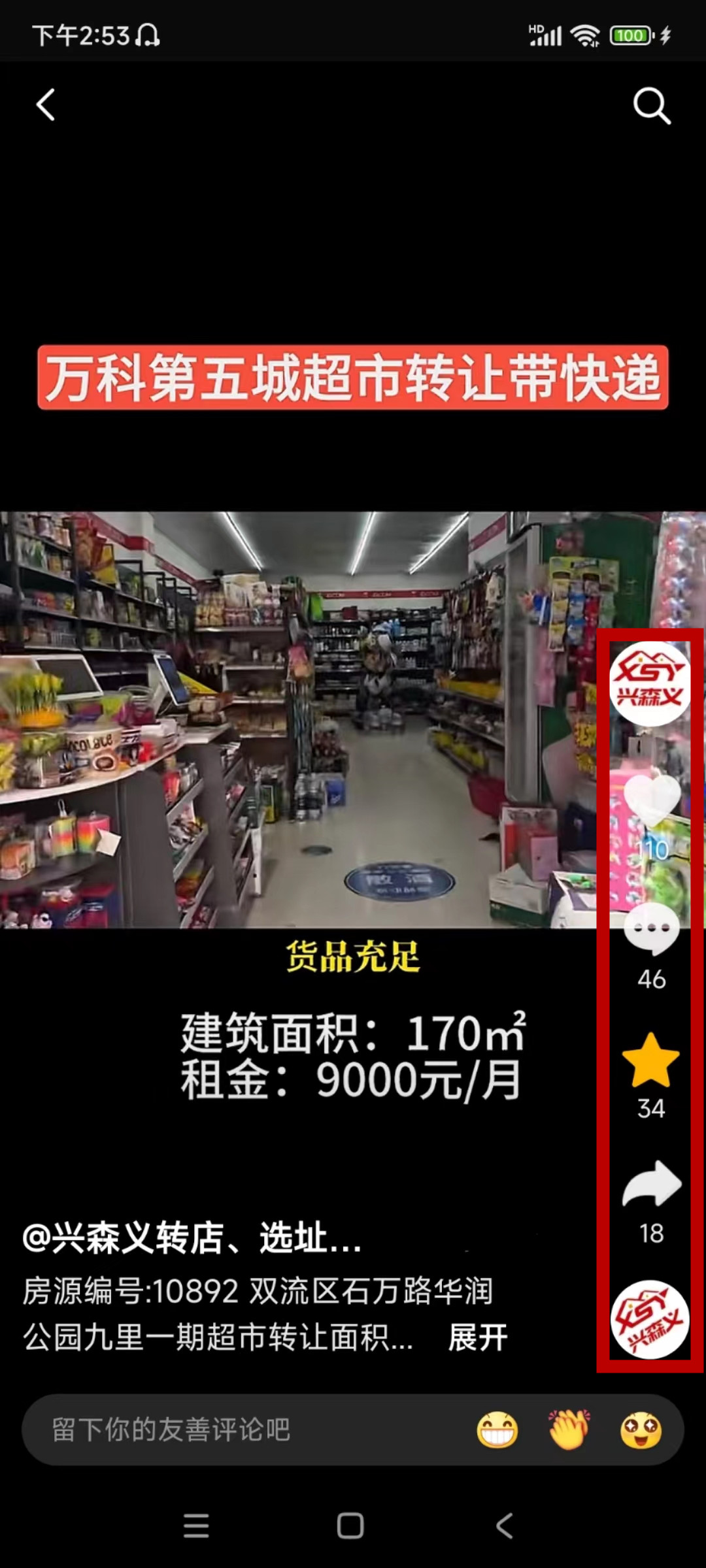 双流区石万路华润公园九里一期超市带快递已转让