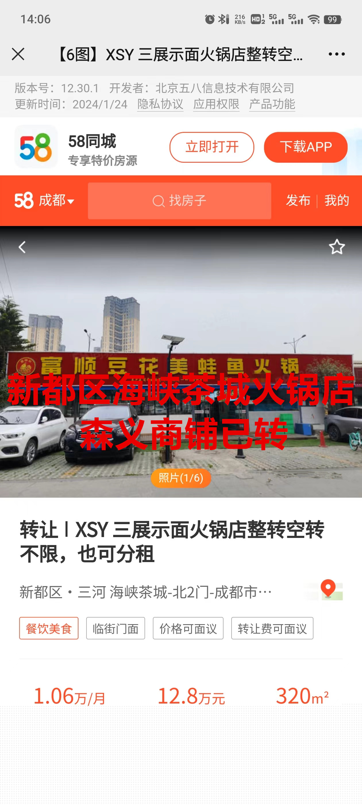 新都厚诚路海峡茶城北火锅店已转让