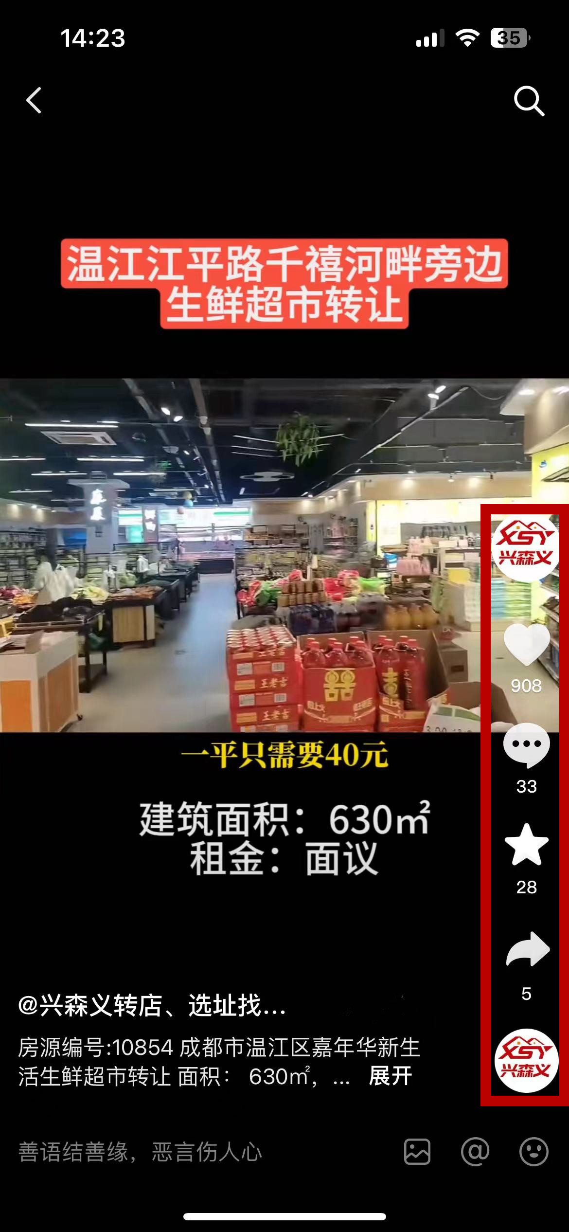 温江区嘉年华新生活B区江平路北生鲜超市已转让
