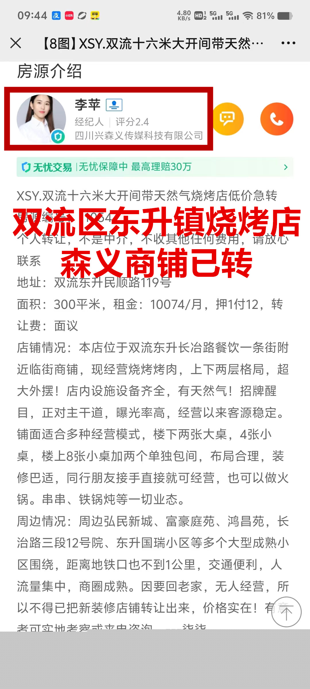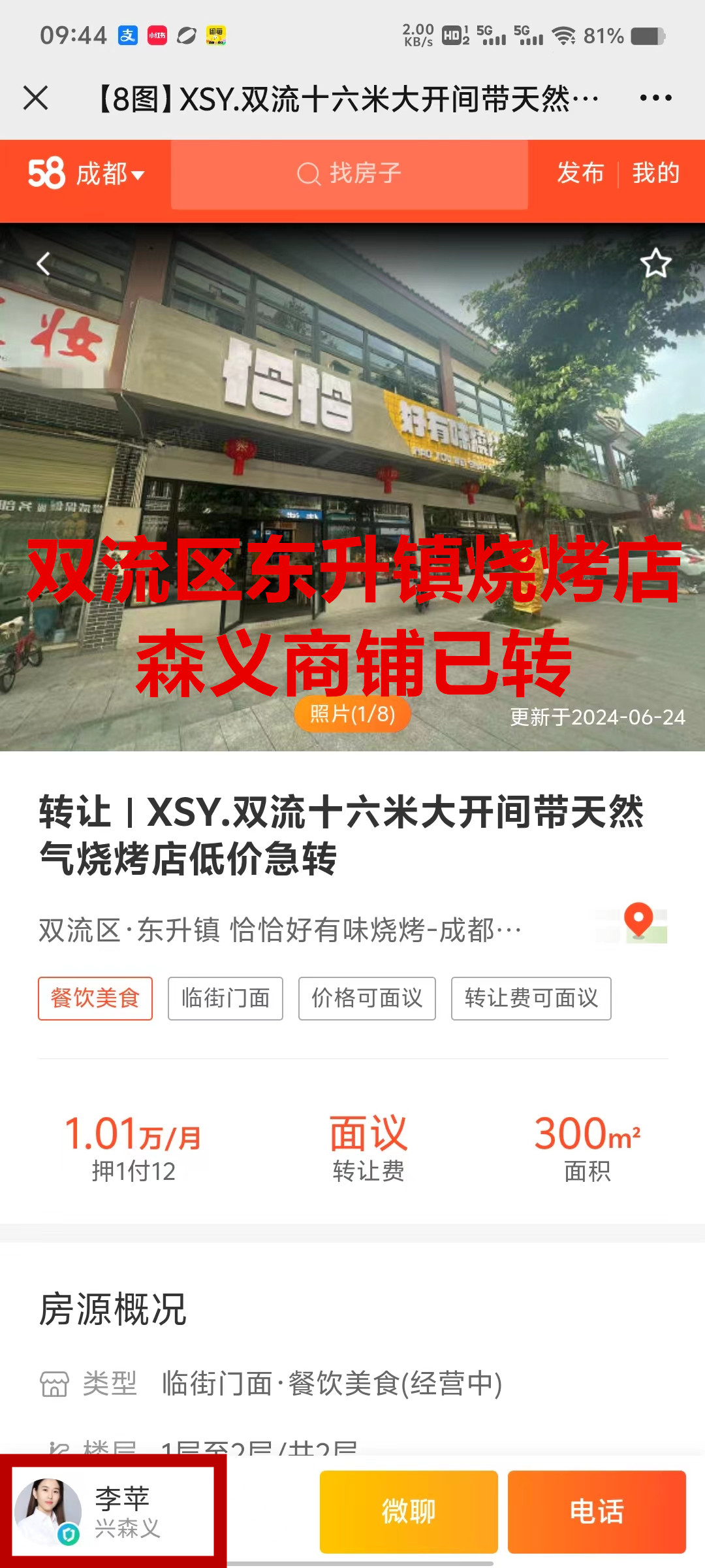 双流东升民顺路烧烤店已转让