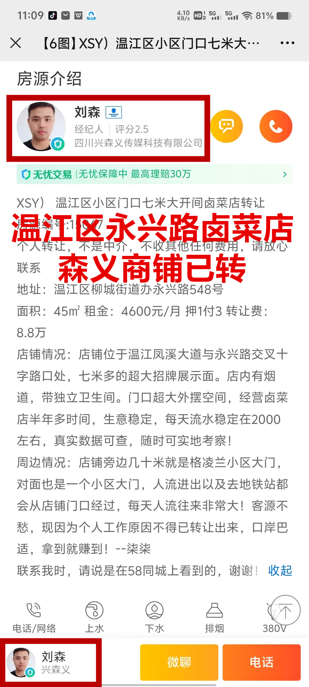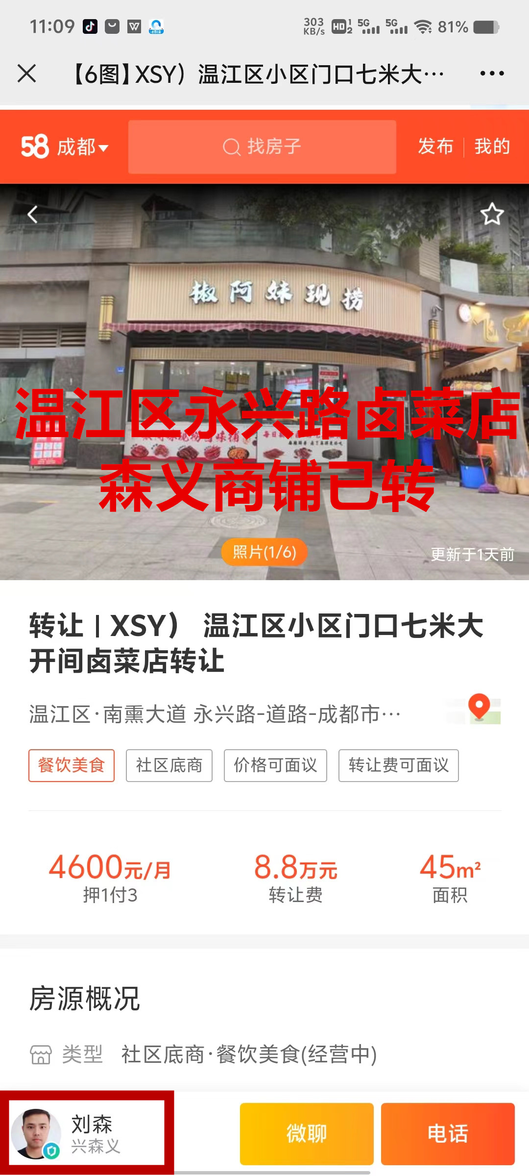 温江区柳城街道办永兴街卤菜店已转让