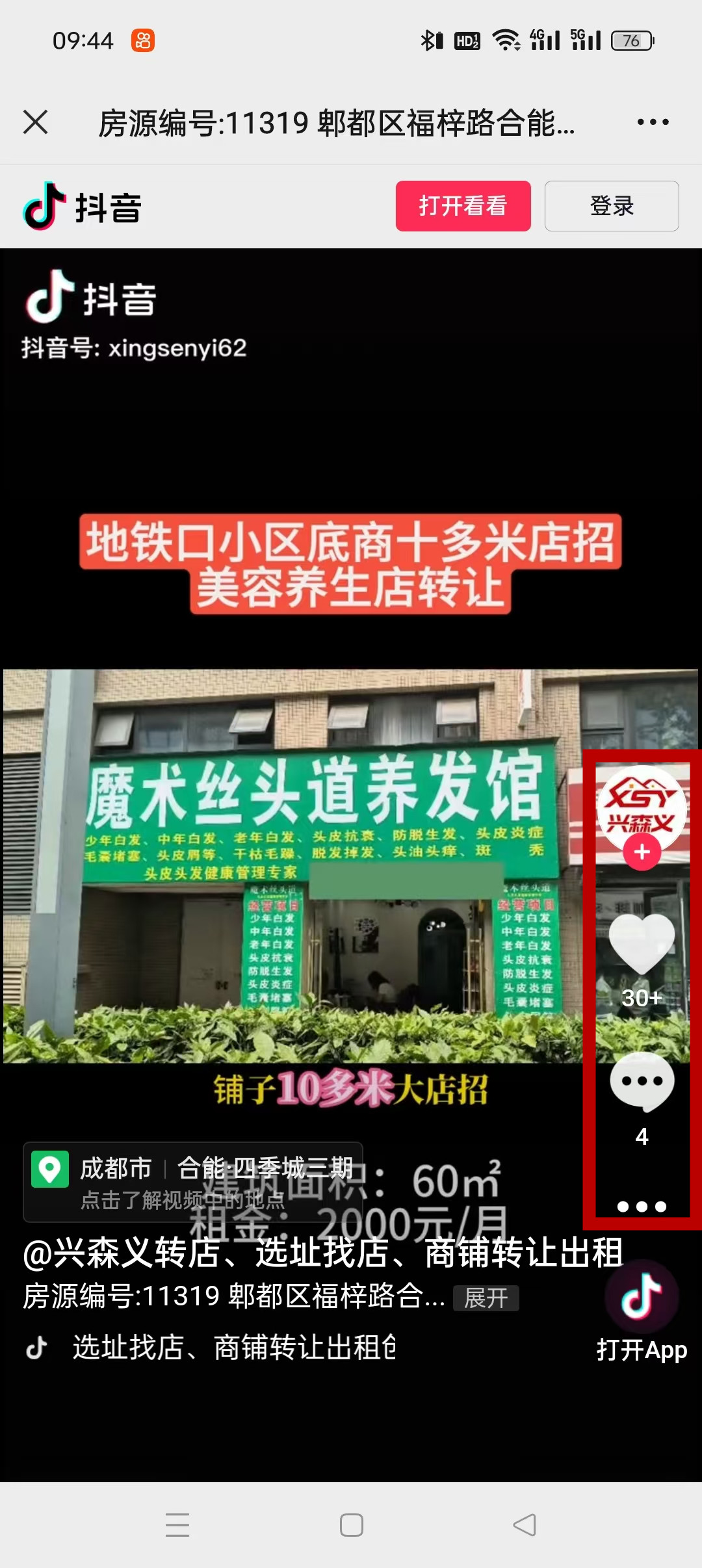 郫都区福梓路合能四季城美容养生店已转让