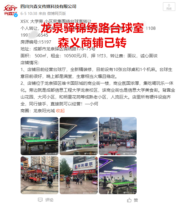 龙泉驿区锦绣路台球室已转让