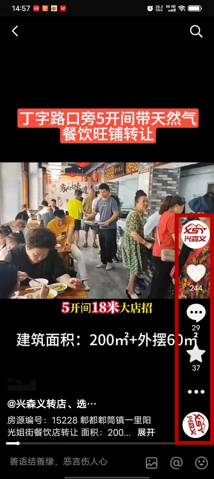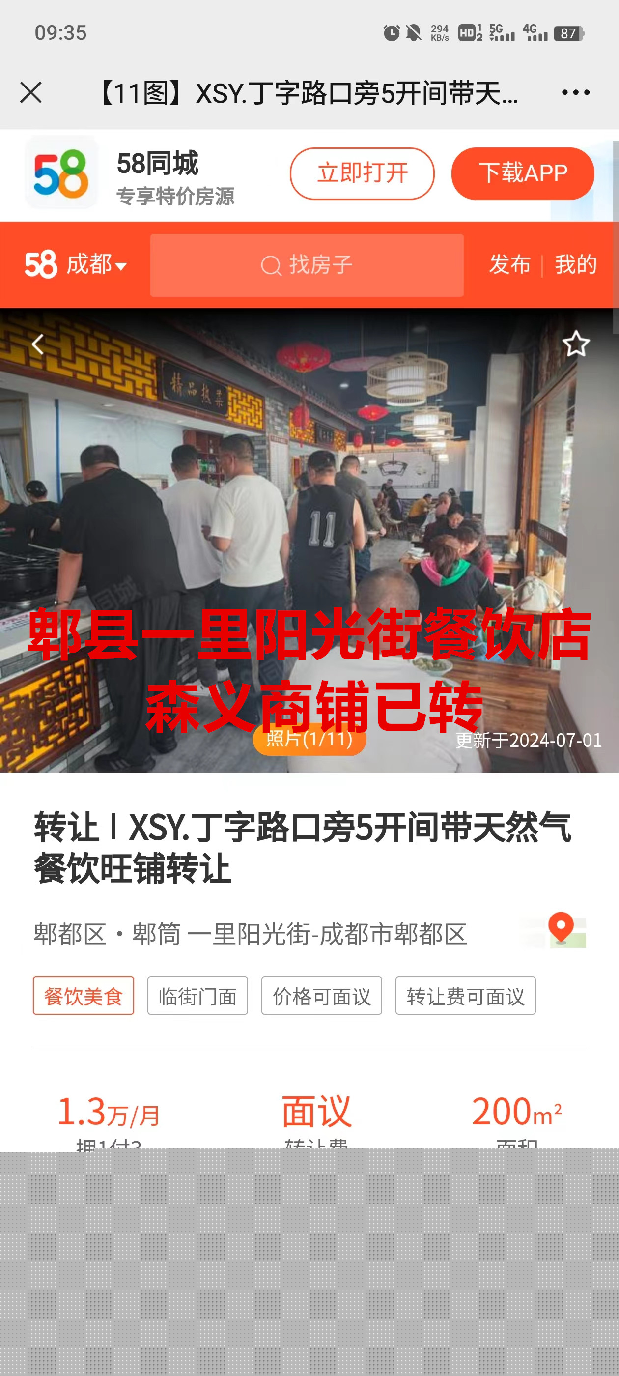 郫都郫筒镇一里阳光街餐饮店已转让