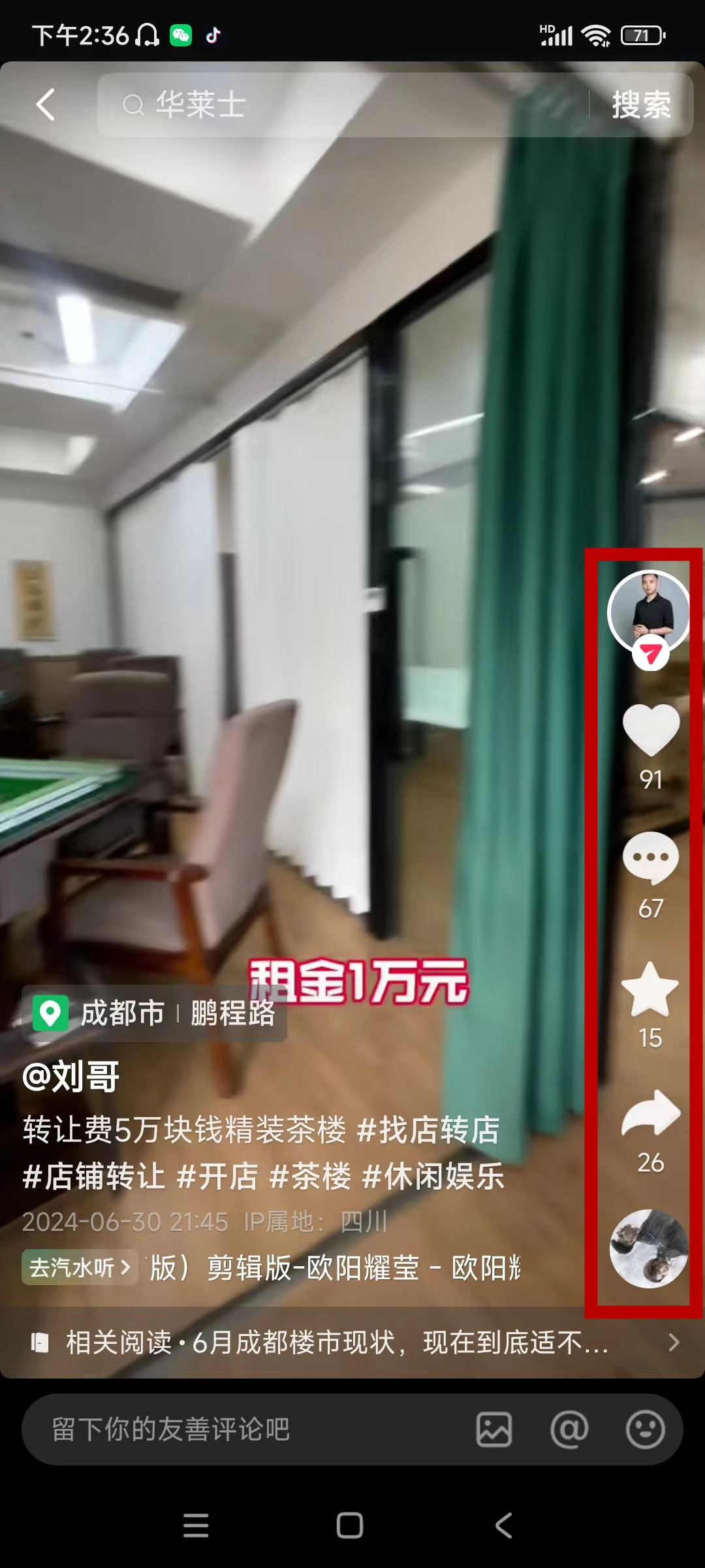 温江区创.理想城鹏程路茶楼已转让