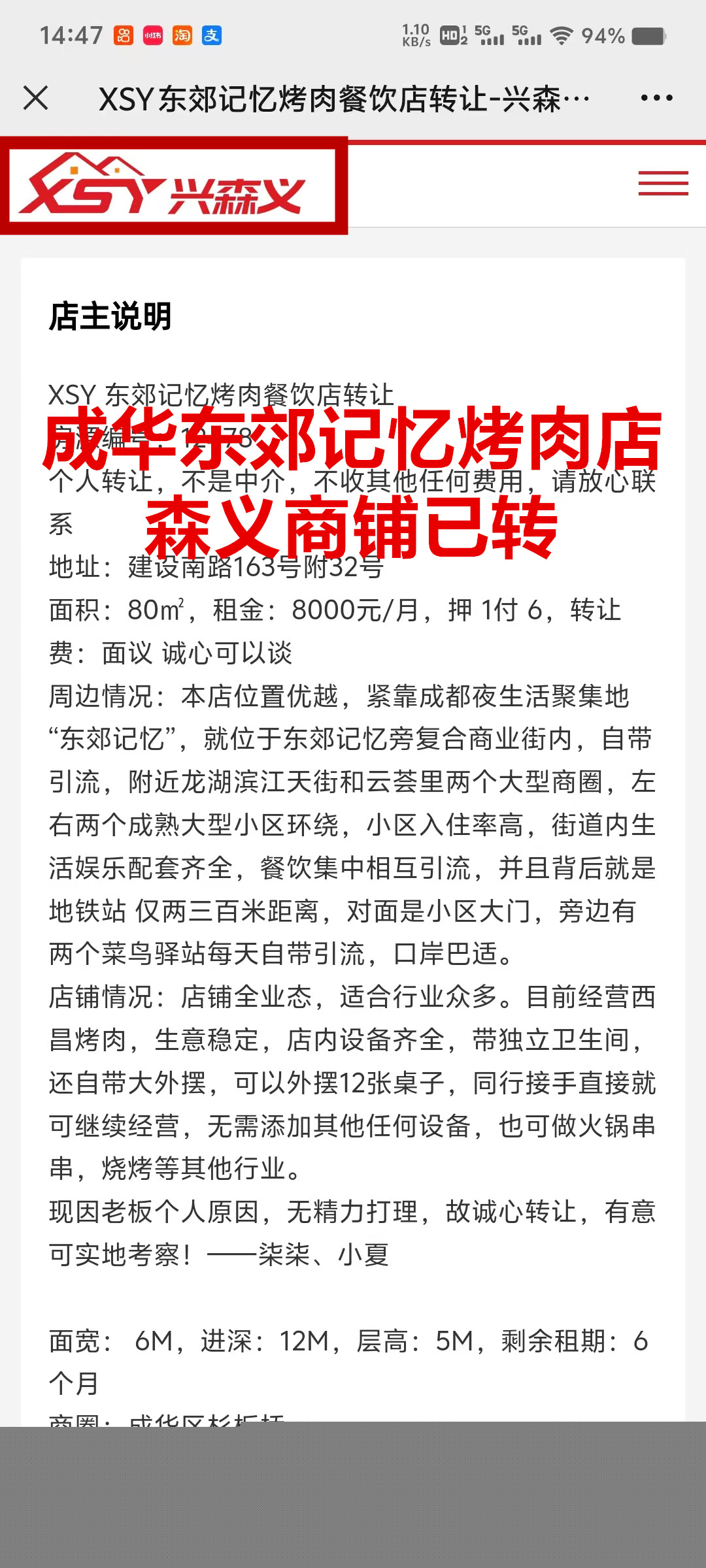 成华区建设南路烤肉店已转让