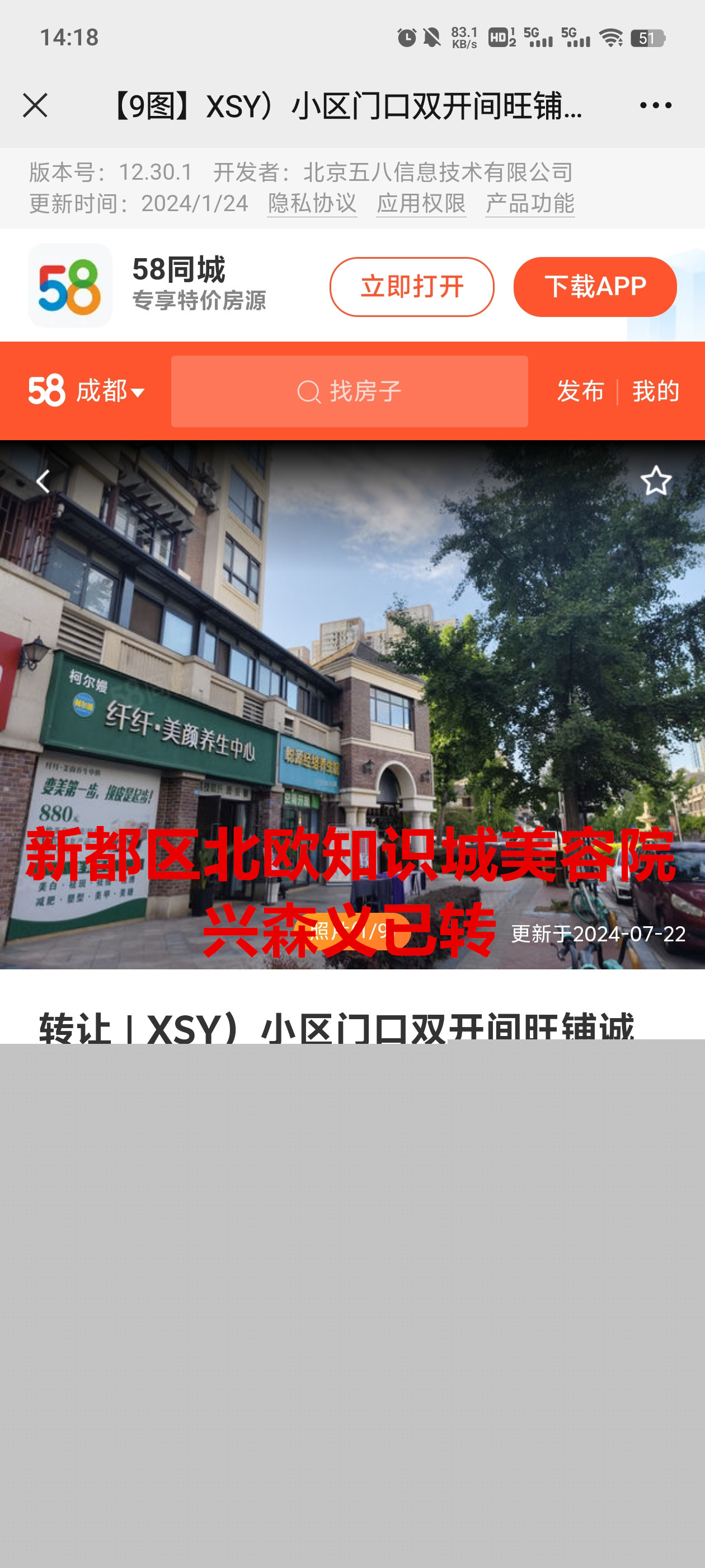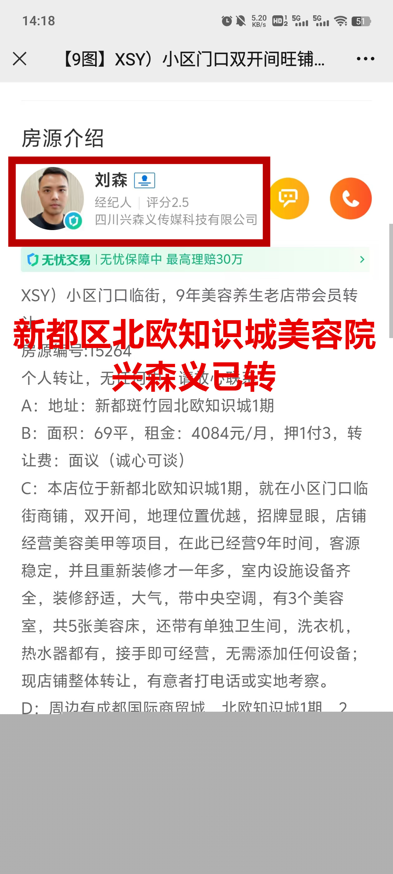 新都斑竹园北欧知识城1期美容院已转让