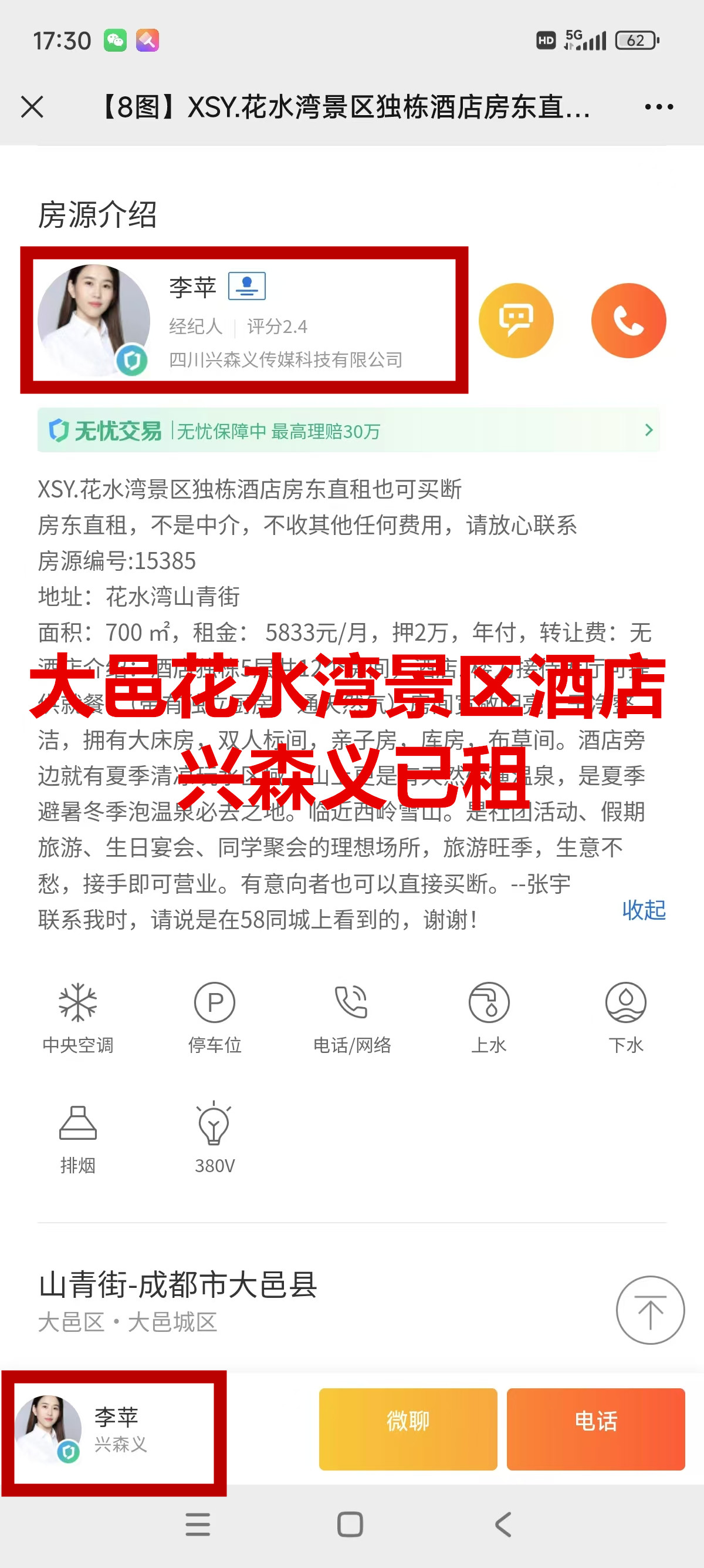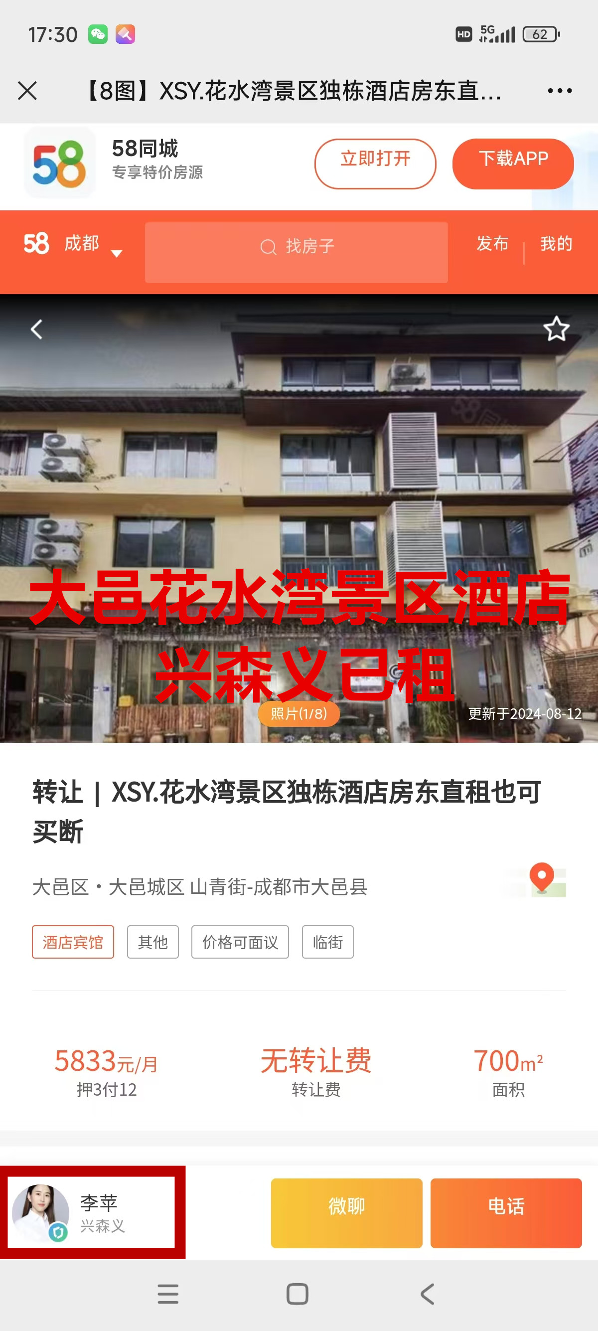 大邑花水湾山青街酒店已出租
