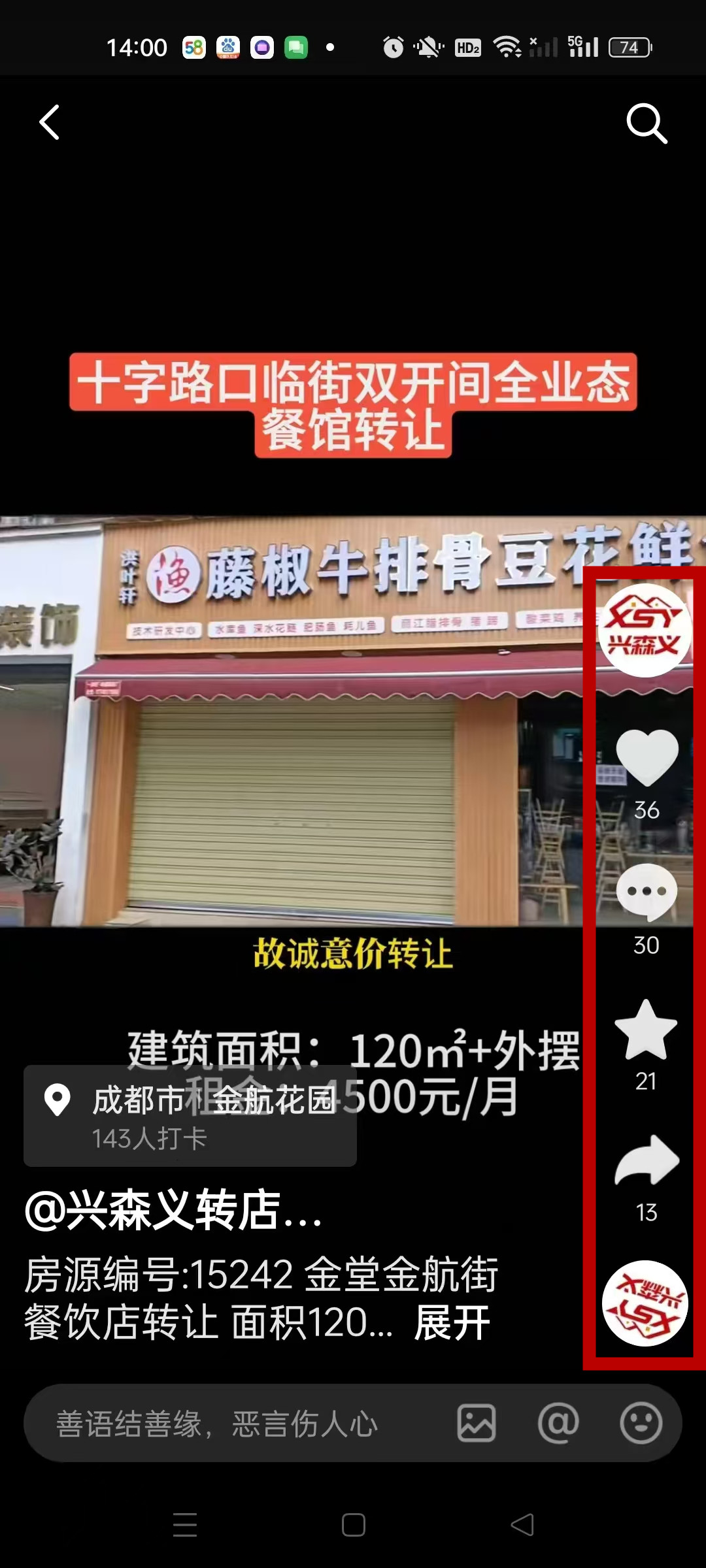 金堂金航街餐饮店已转让