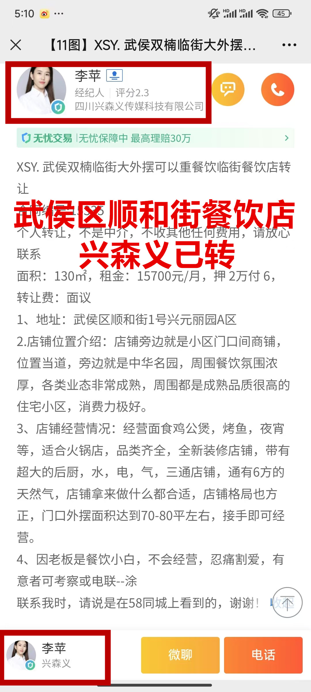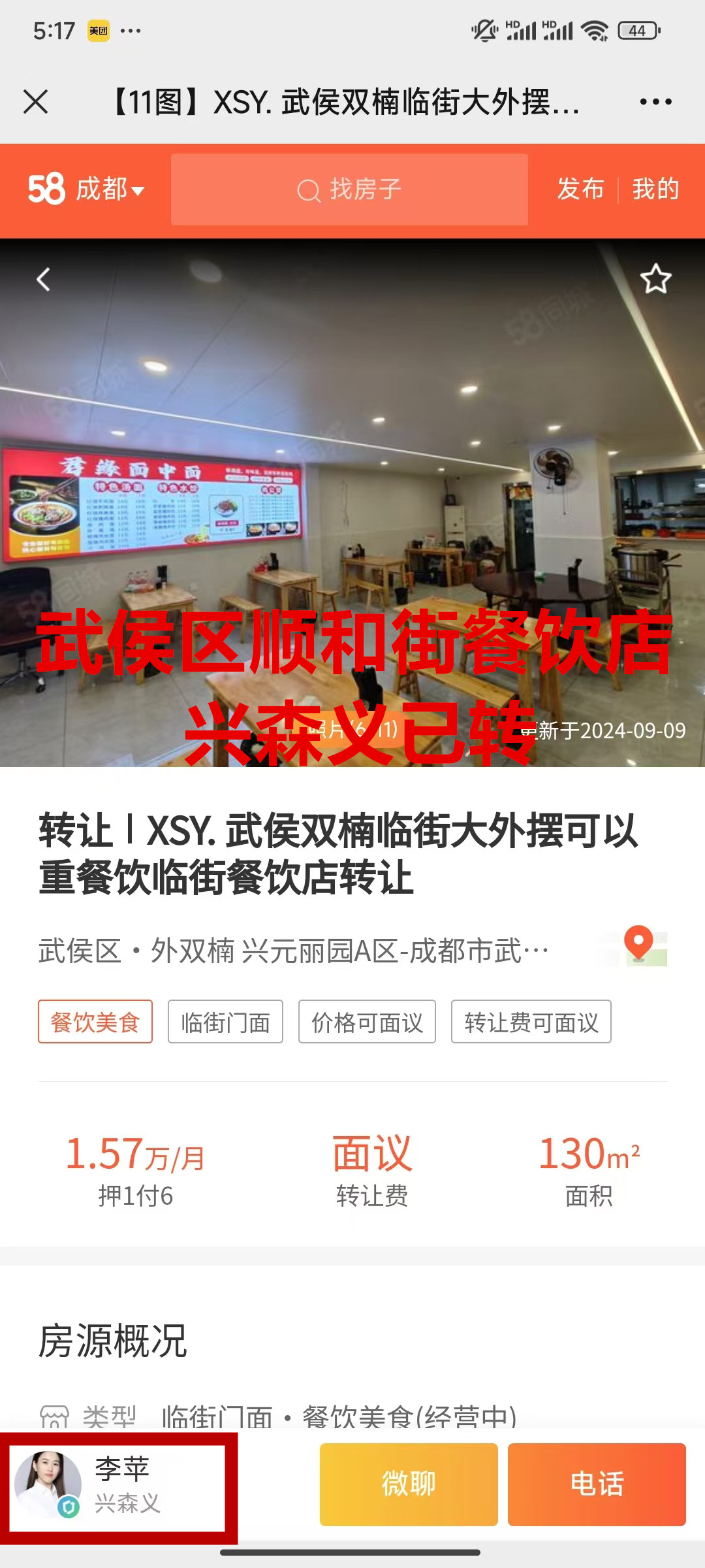 武侯区顺和街兴元丽园A区餐饮店已转让