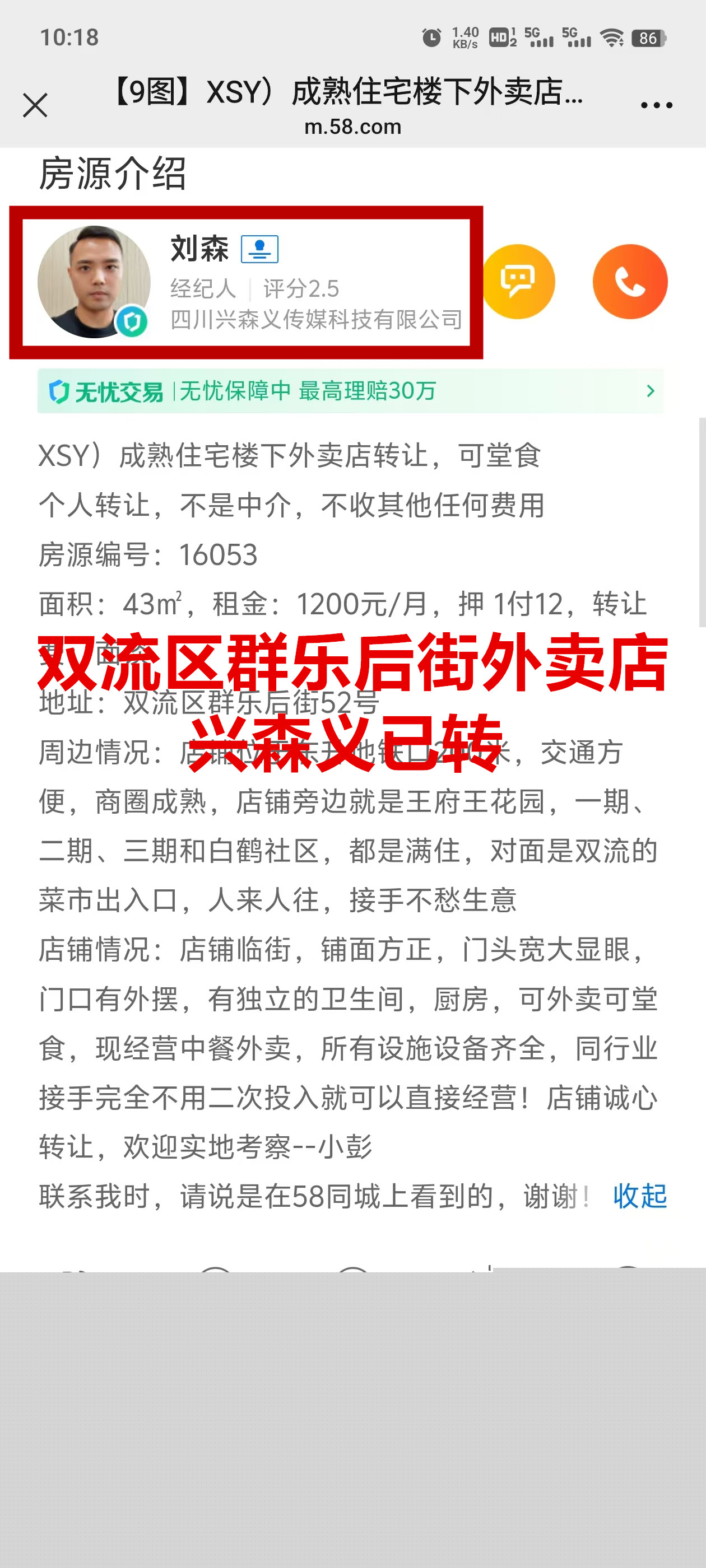 双流区群乐后街外卖店已转让