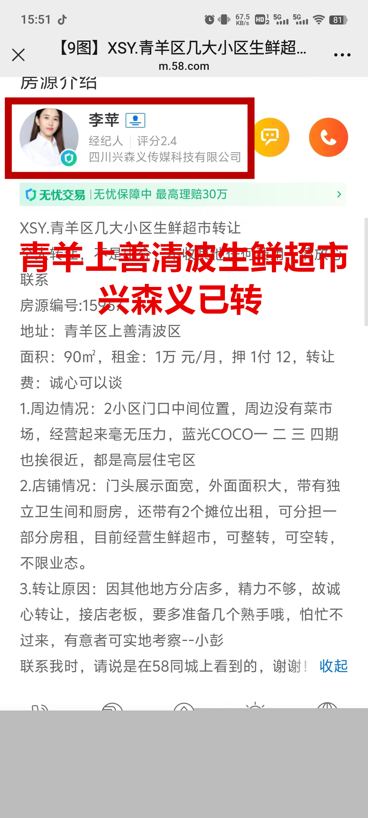 青羊上善清波小区生鲜超市已转让