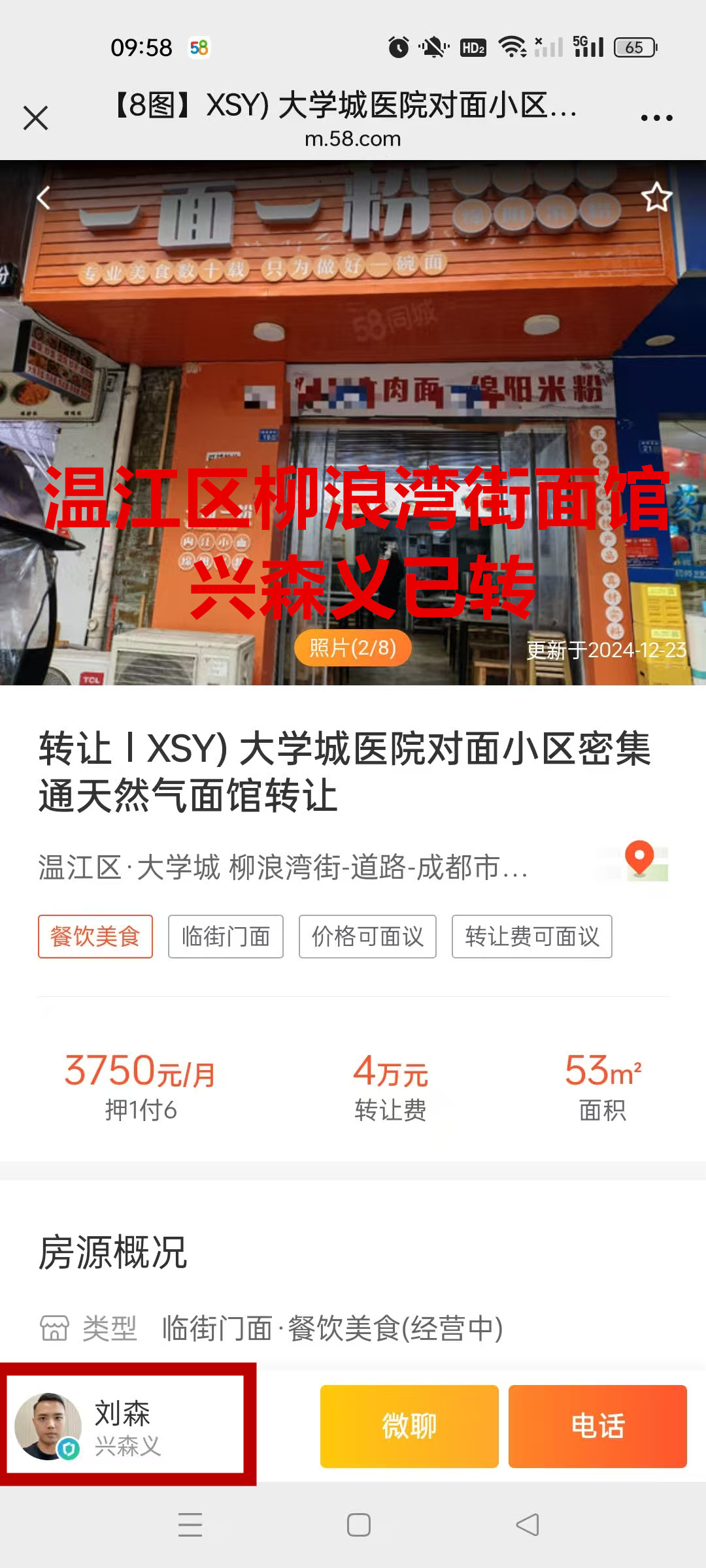 温江区大学城柳浪湾街面馆已转让