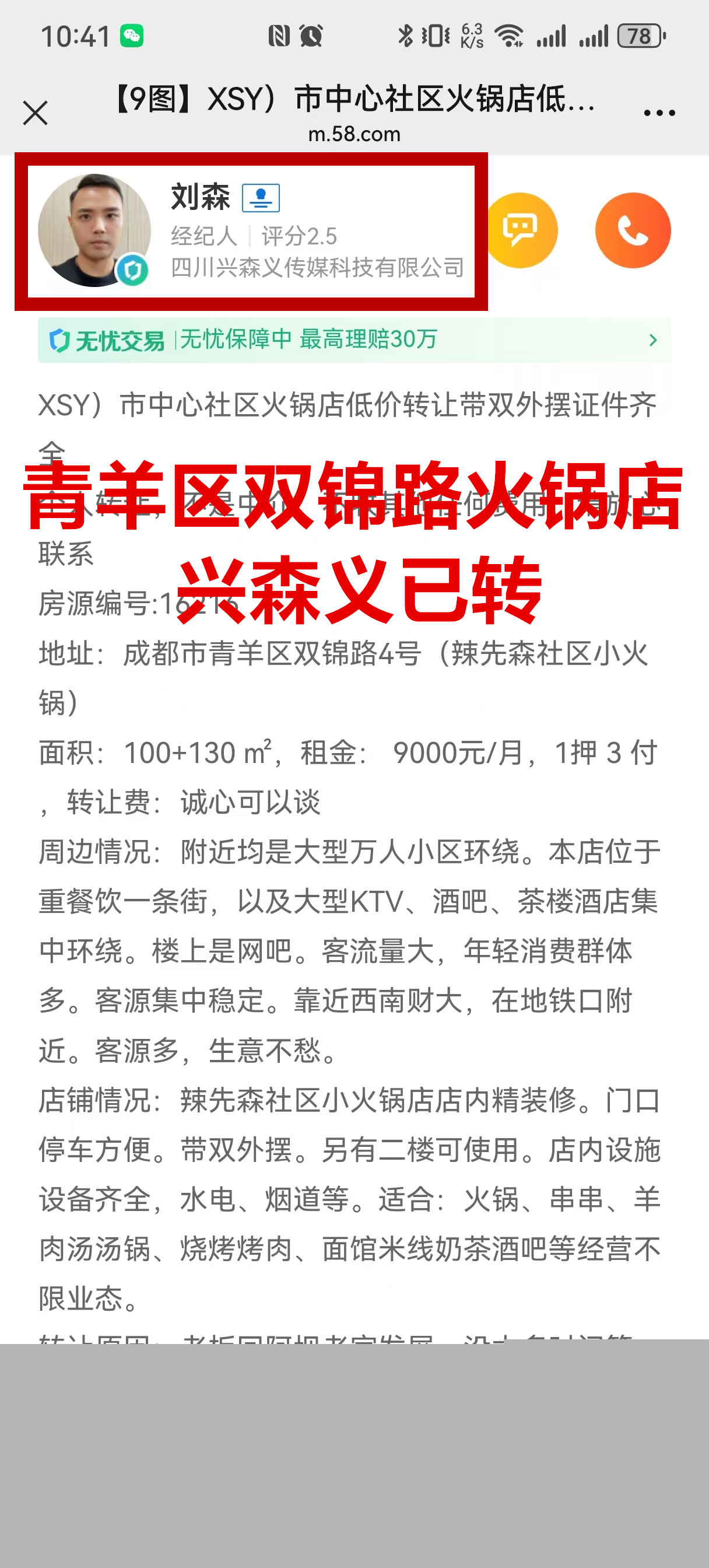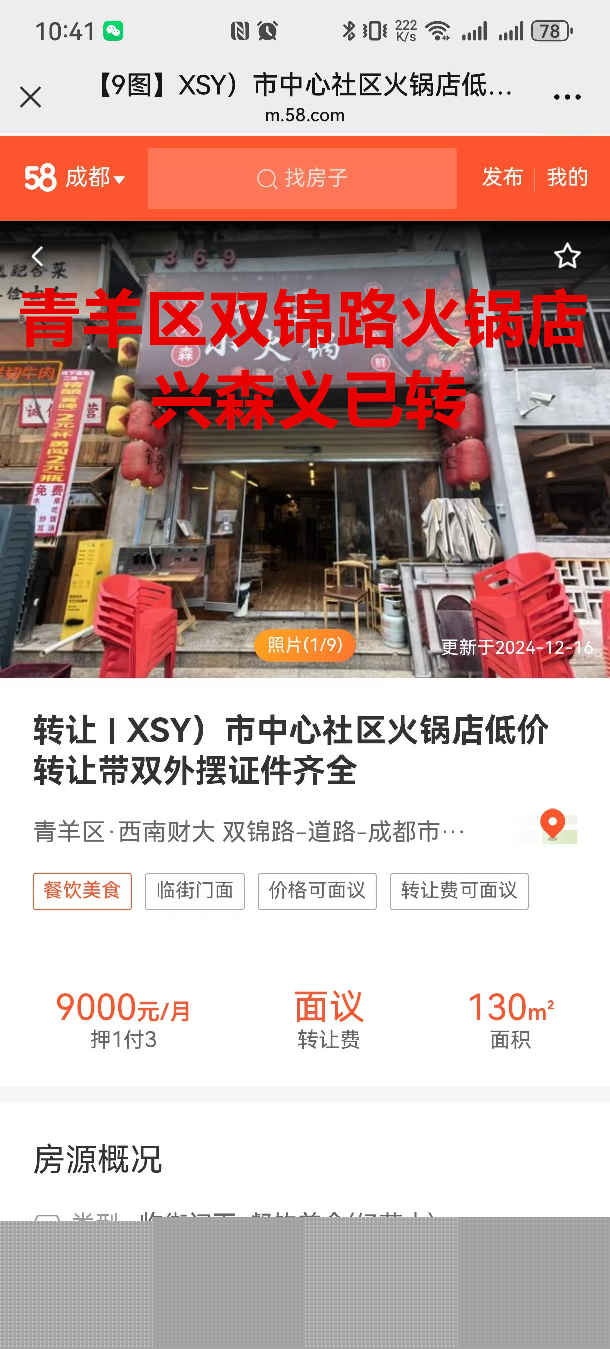 青羊区双锦路火锅店已转让