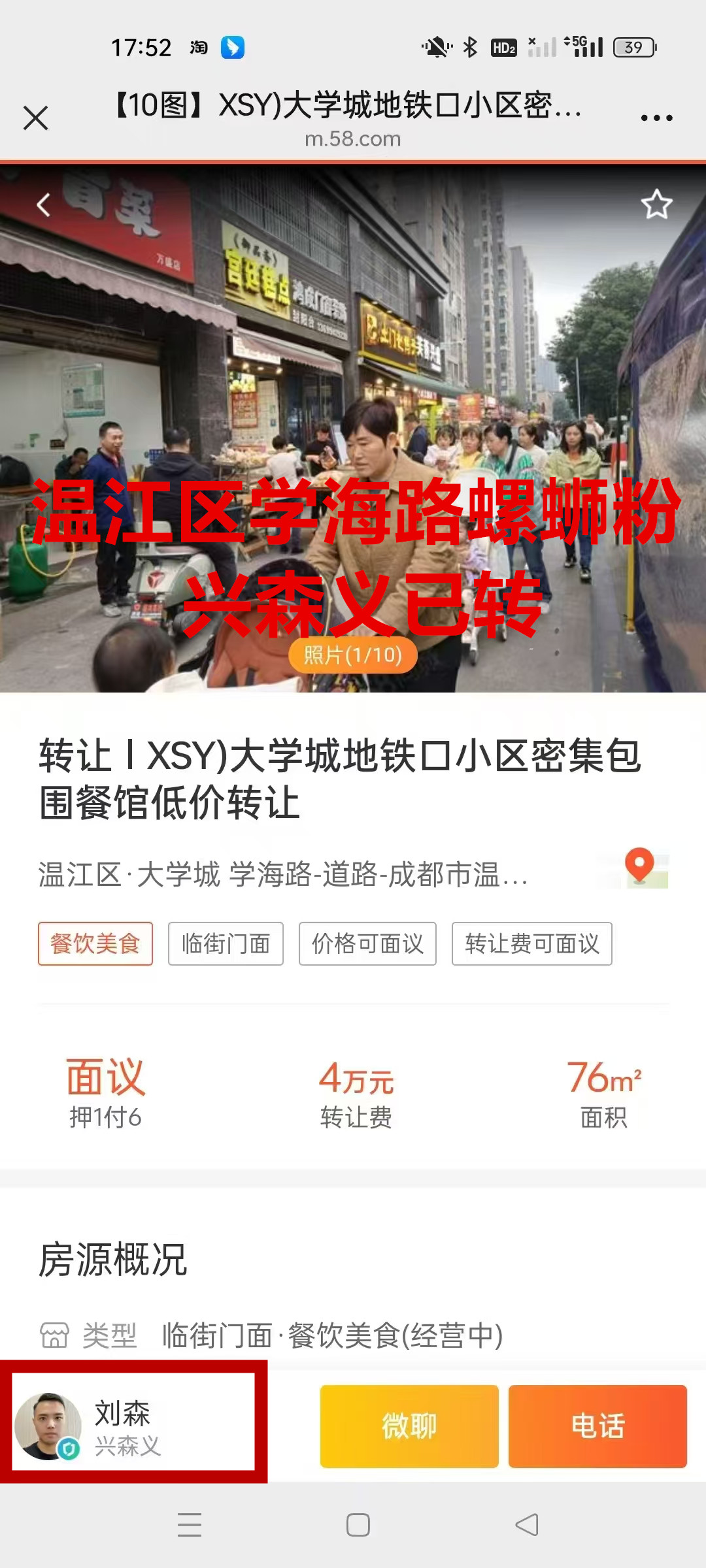 温江区学海路螺蛳粉店已转让