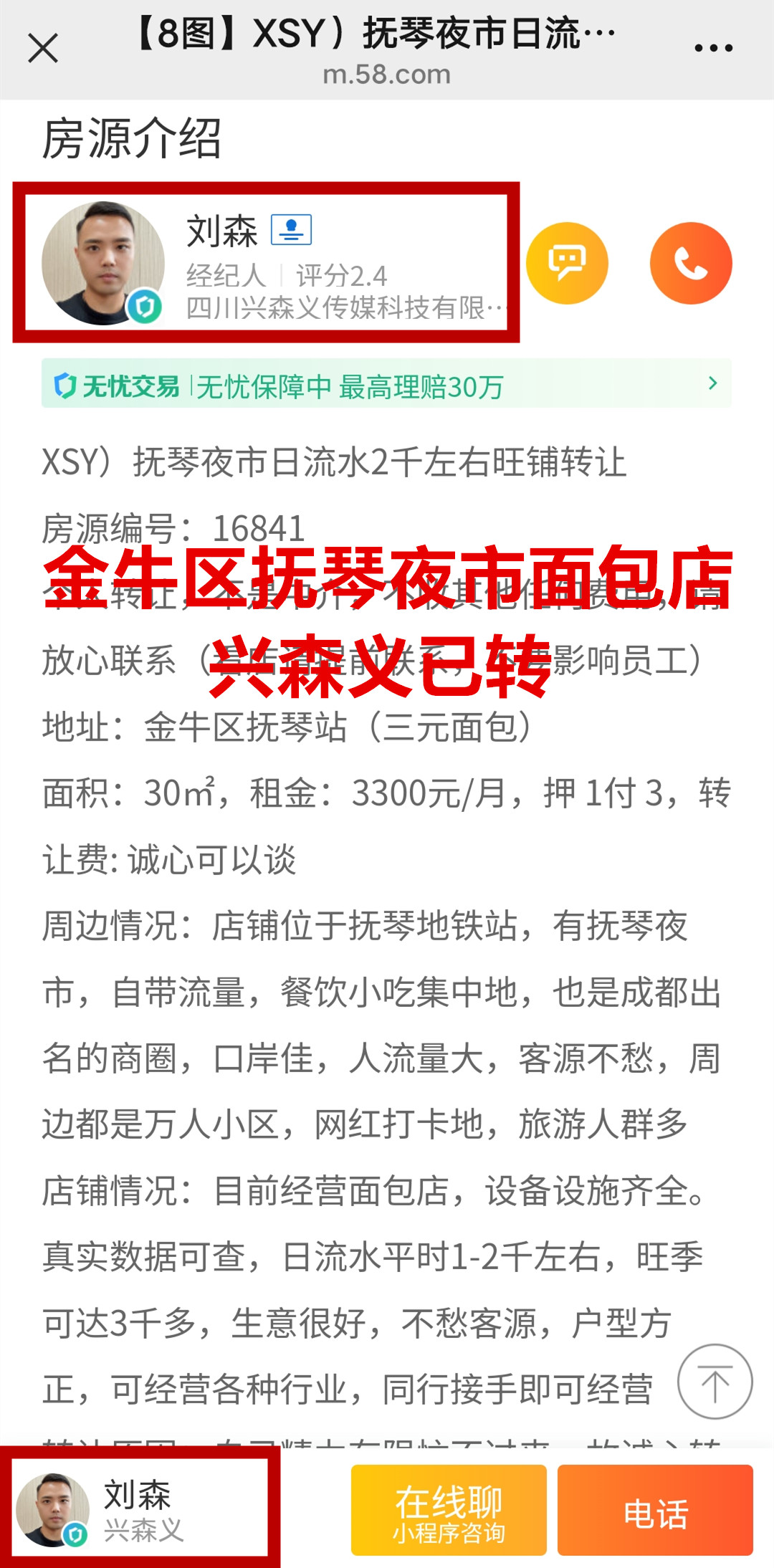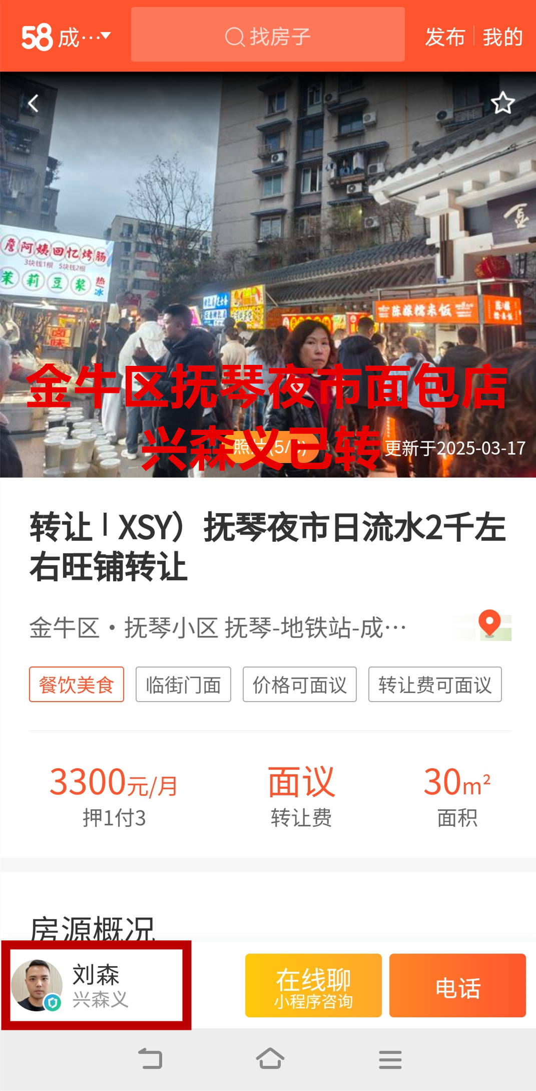 金牛区抚琴夜市面包店已转让