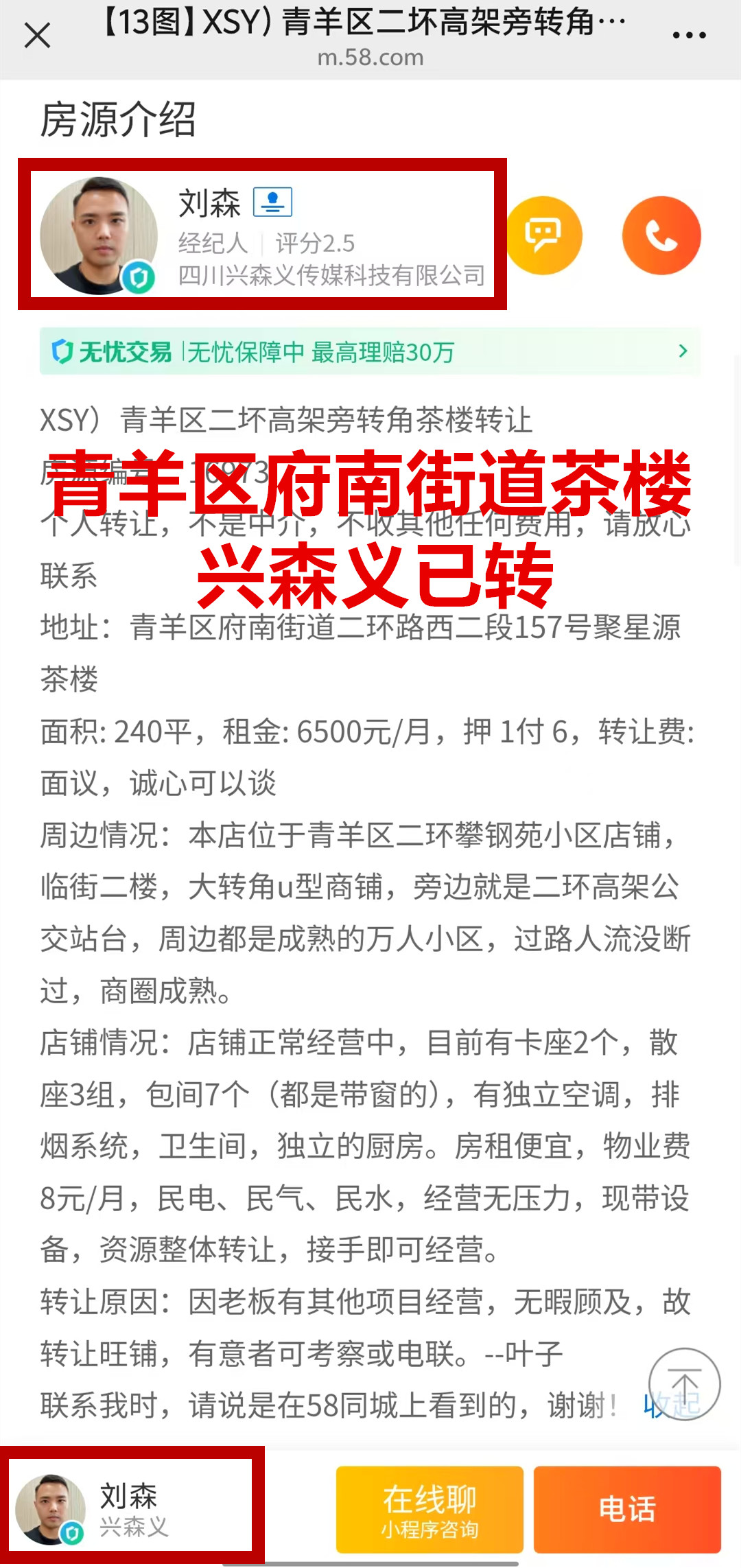 青羊区府南街道二环路西二段茶楼已转让