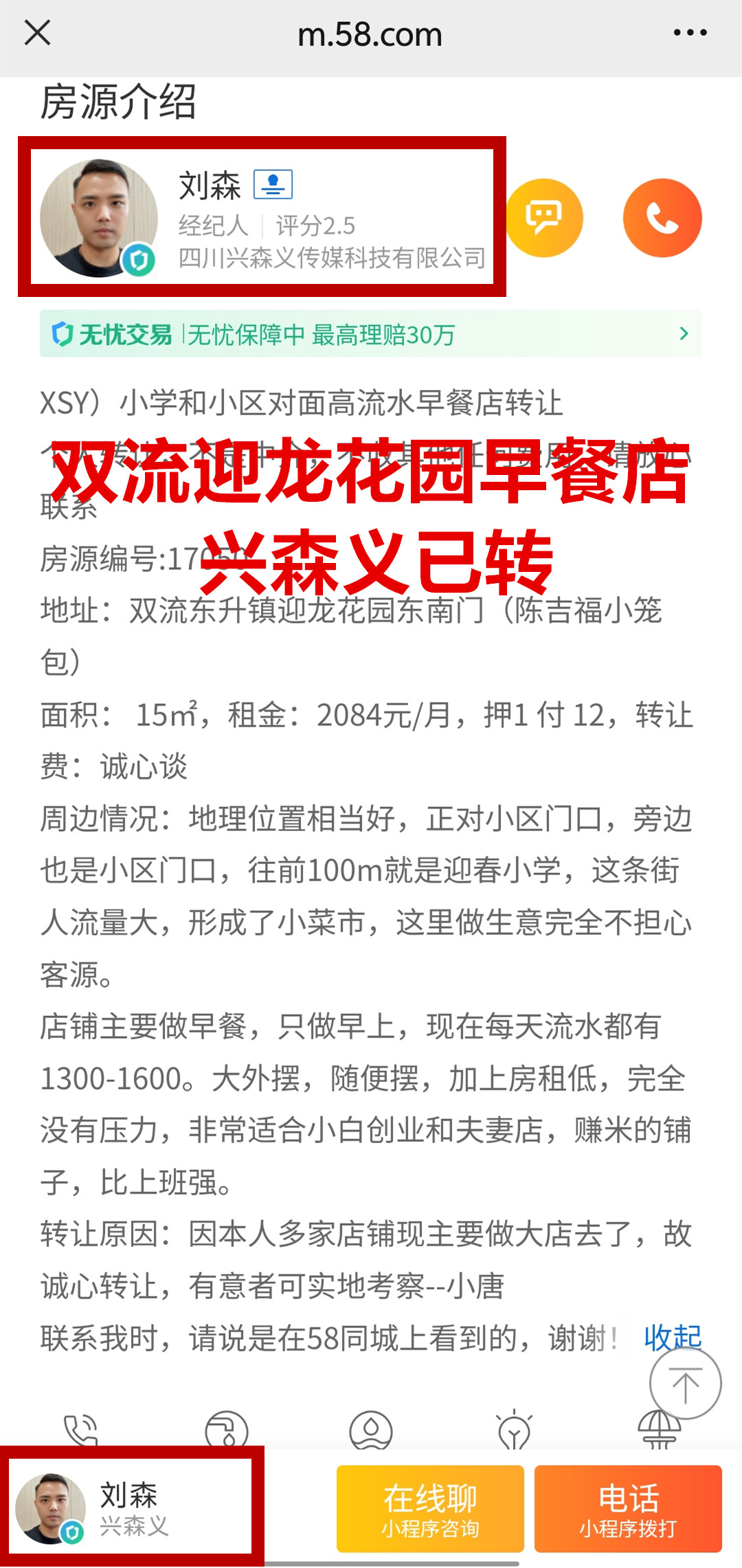 双流东升镇迎龙花园东南门早餐店已转让