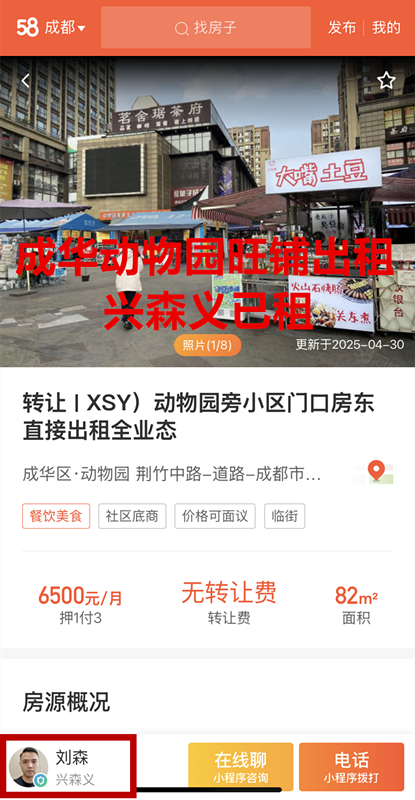 成华区动物园荆竹中路旺铺已出租
