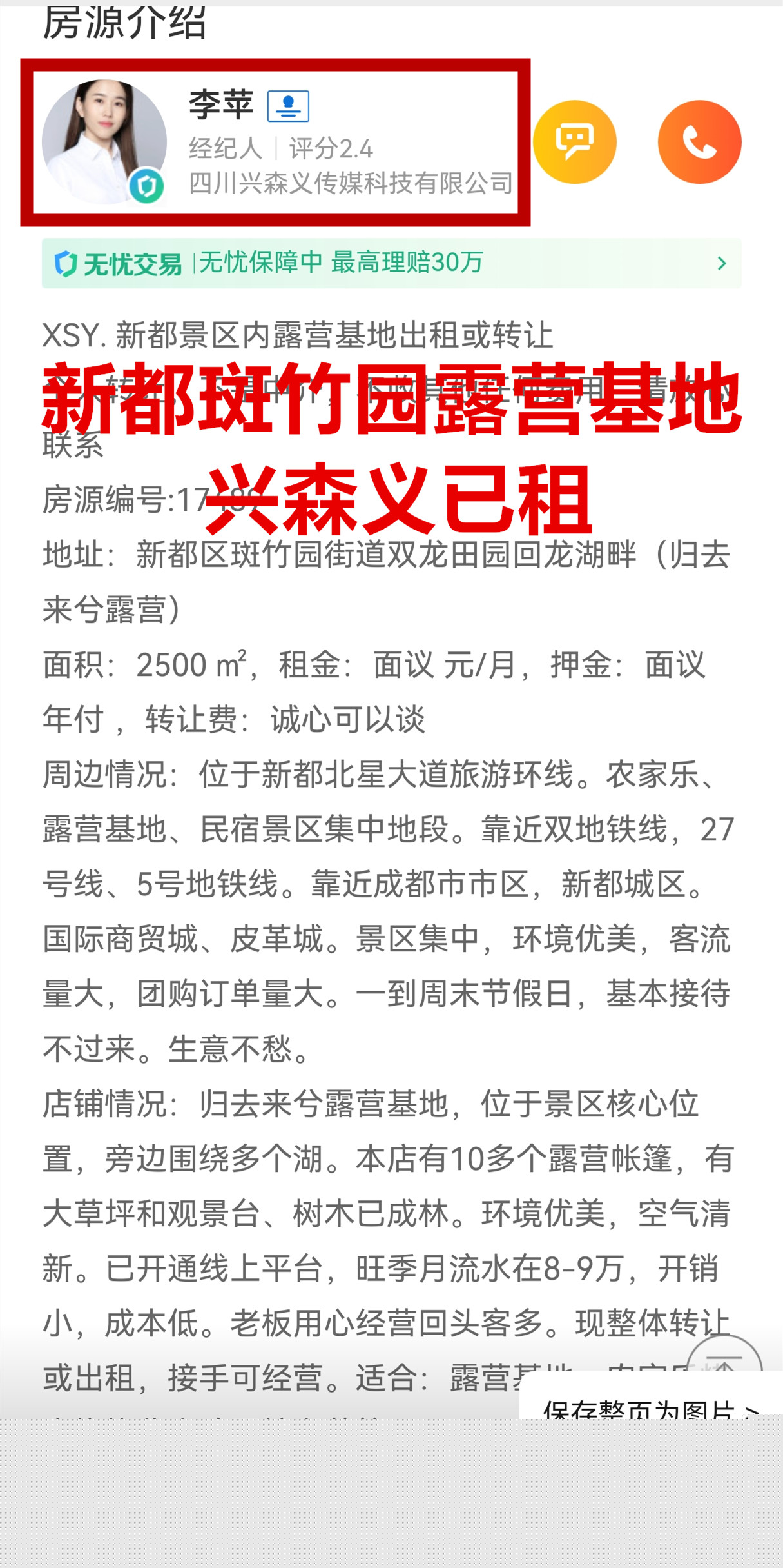 新都区斑竹园街道双龙田园回龙湖畔露营基地已出租