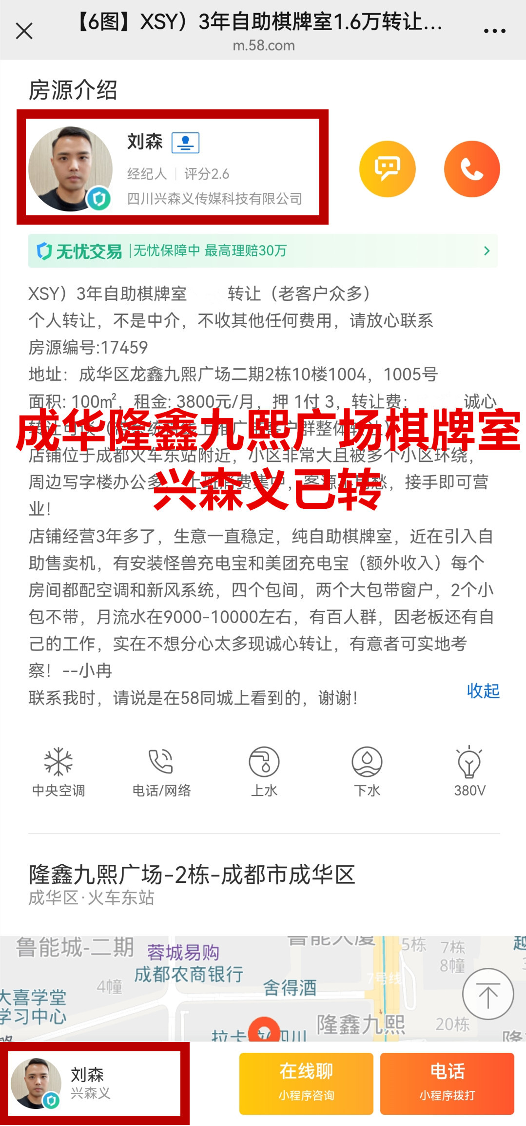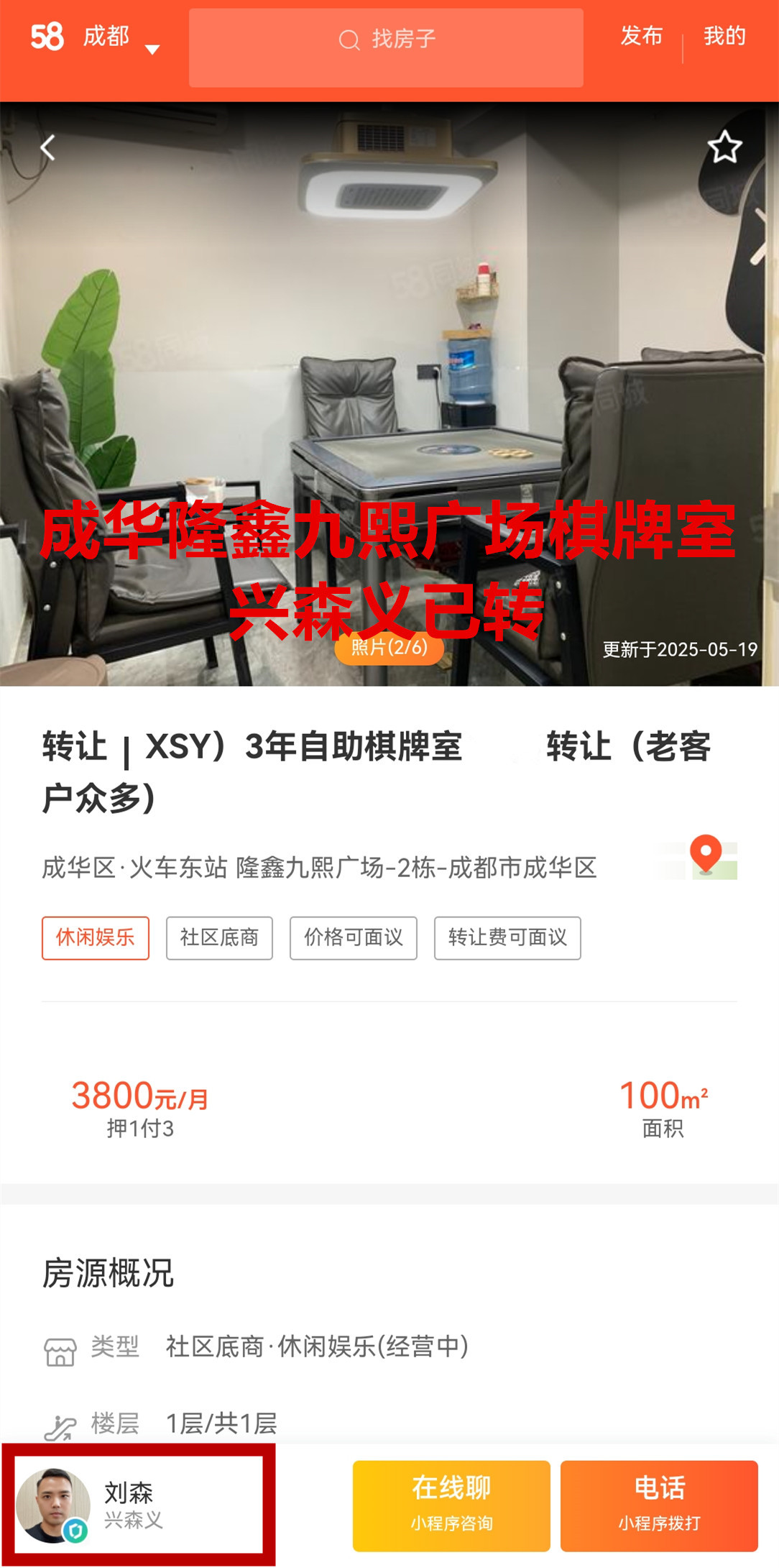 成华区隆鑫九熙广场棋牌室已转