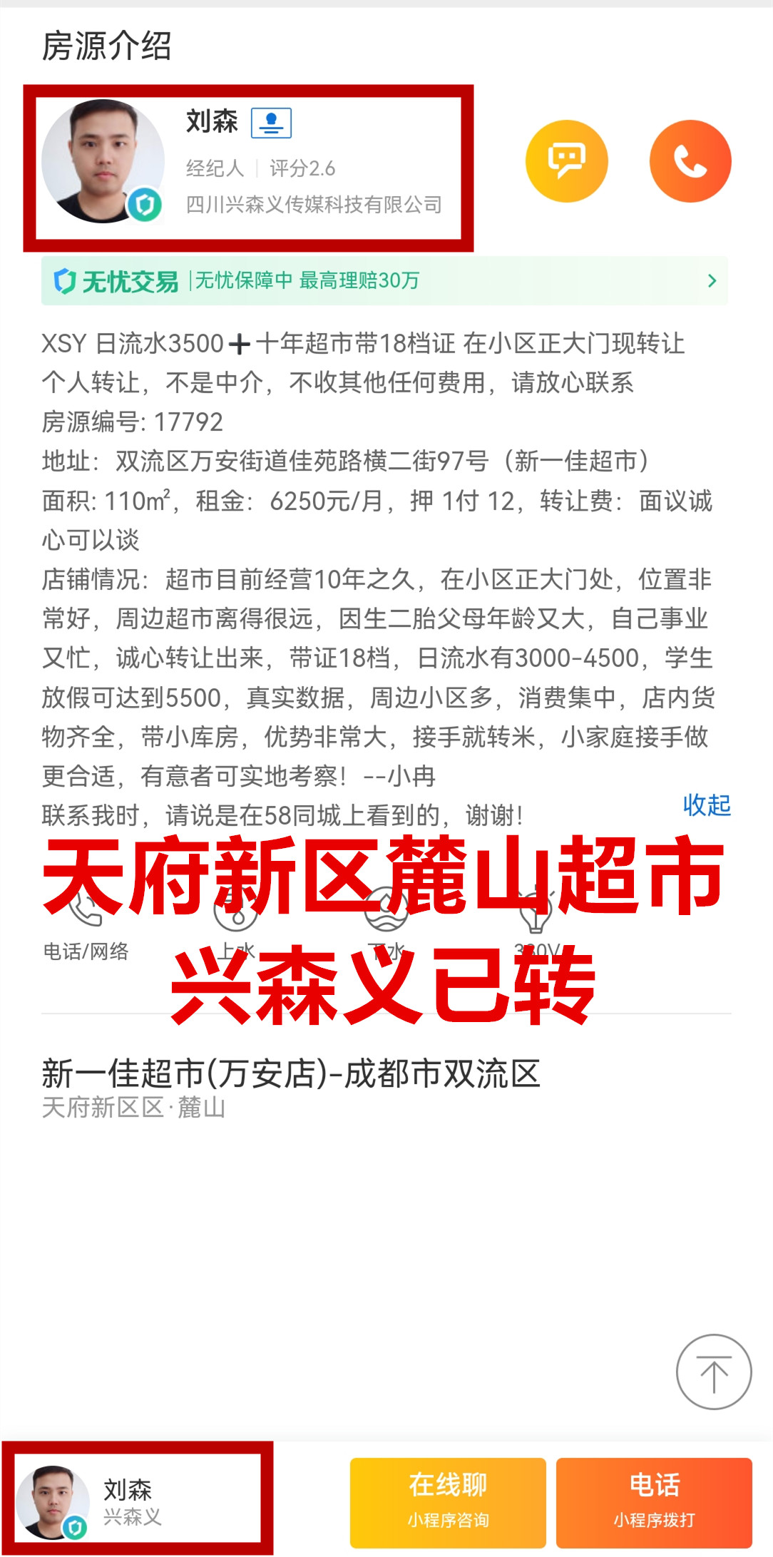 双流区万安街道佳苑路横二街超市已转让