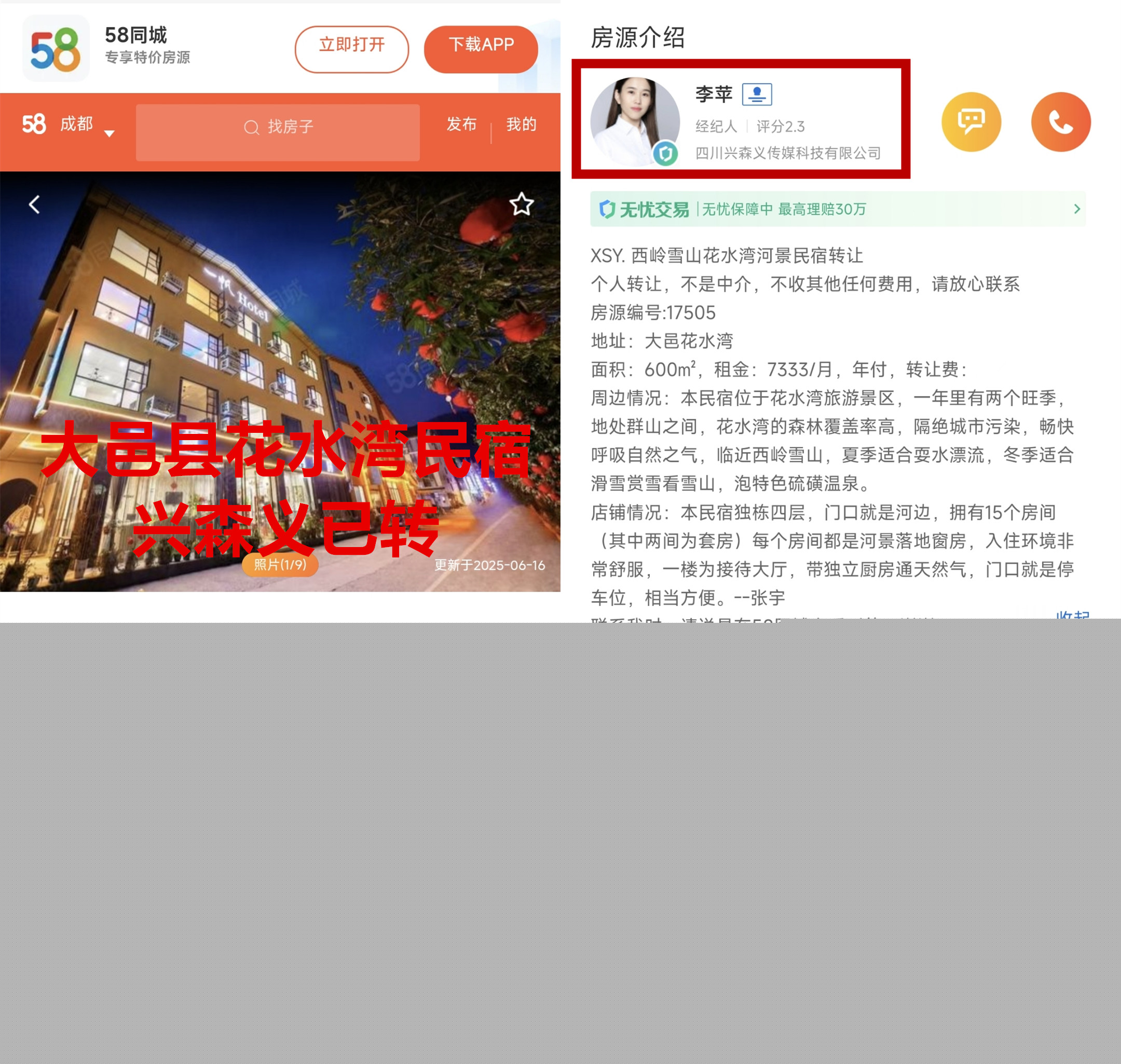 大邑花水湾民宿已转让
