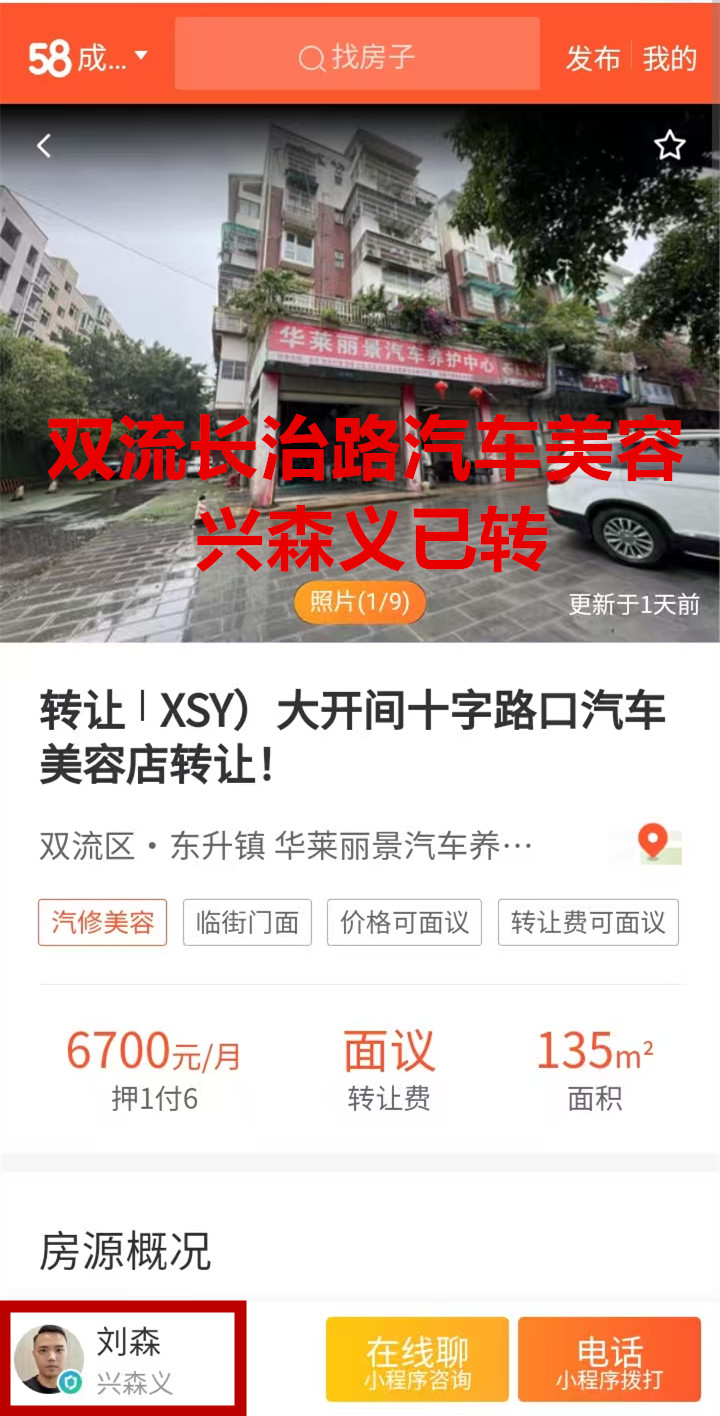 双流区长治路四段汽车美容店已转让