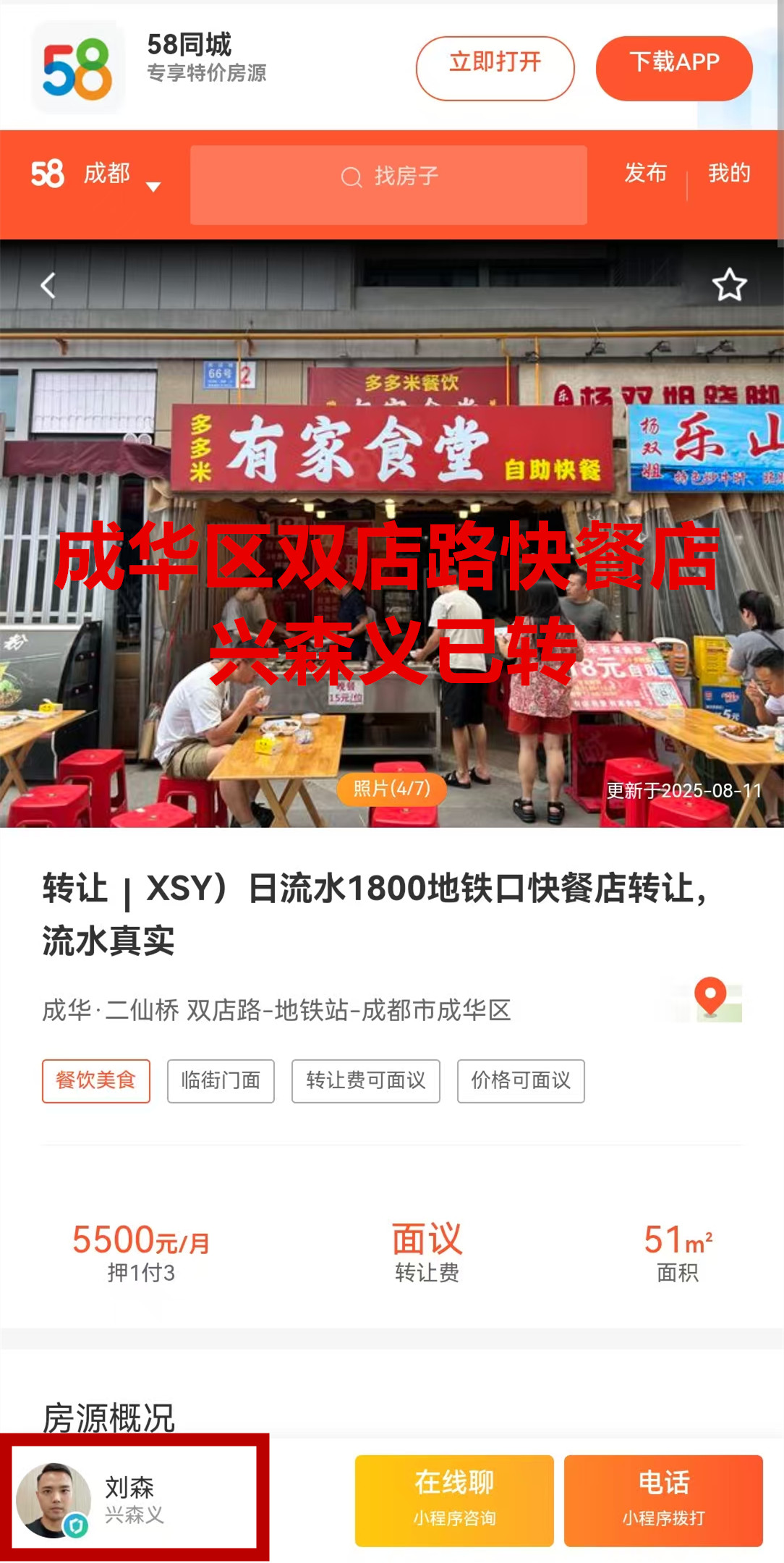 成华区双店路快餐店已转让