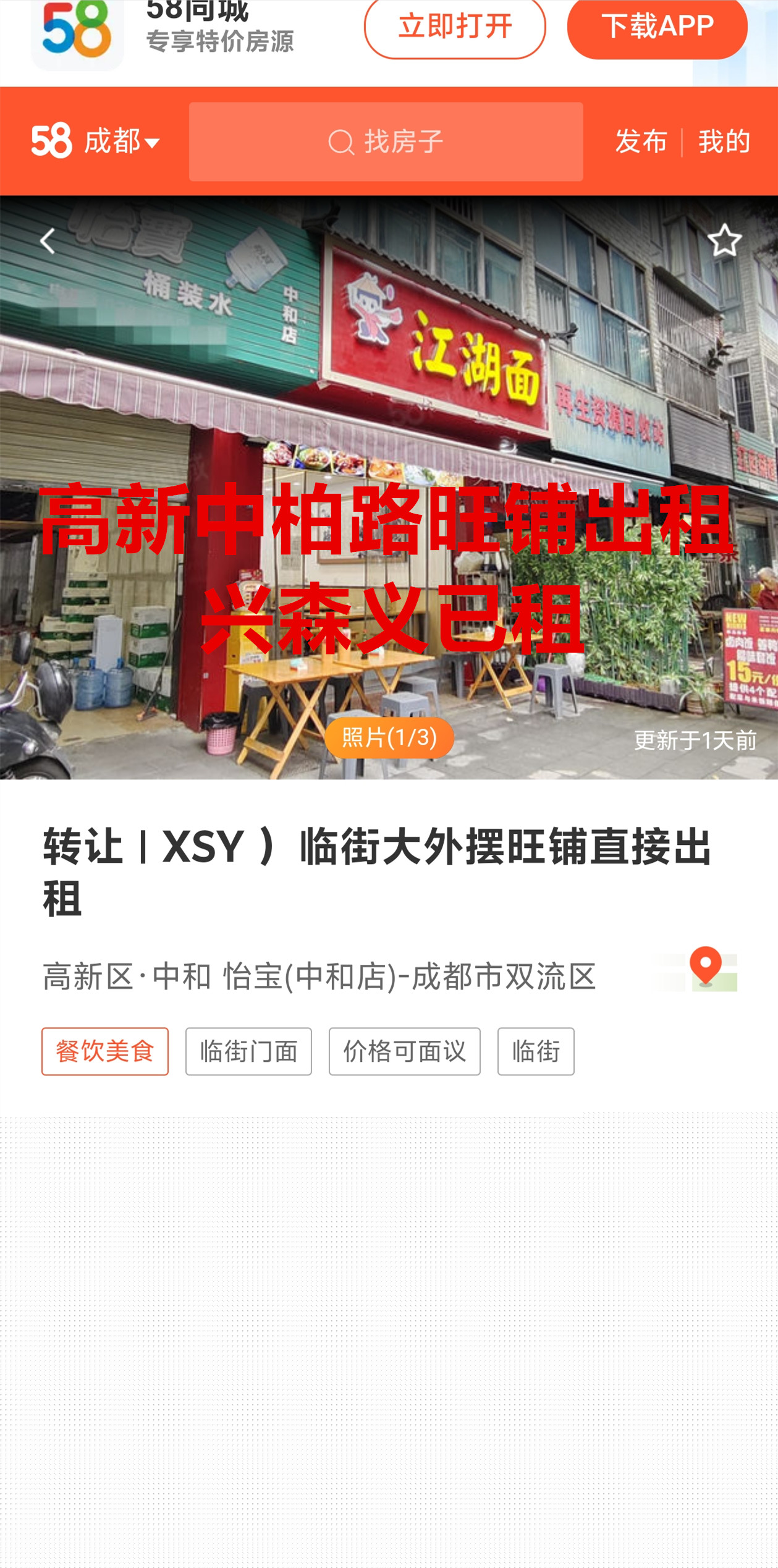 高新区中和镇中柏路桶装水已租