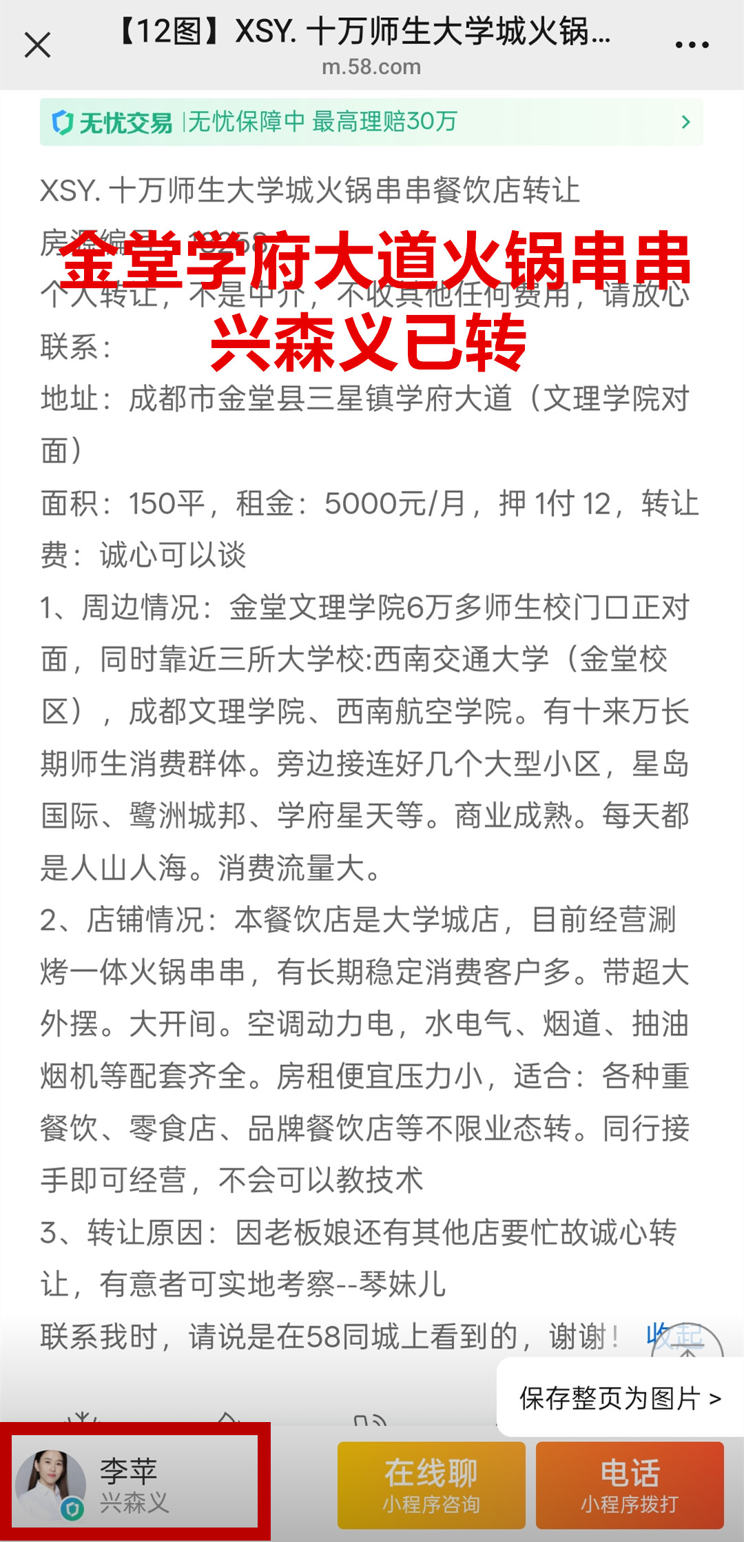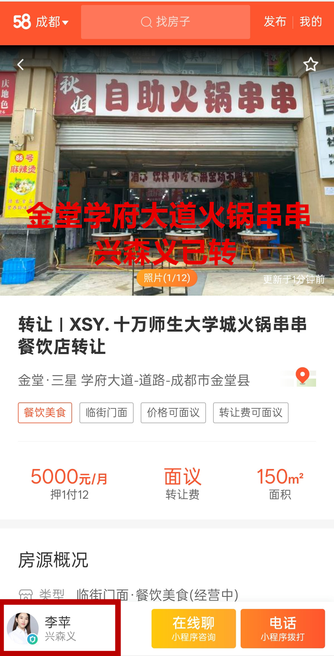 金堂县三星镇学府大道火锅串串店已转让