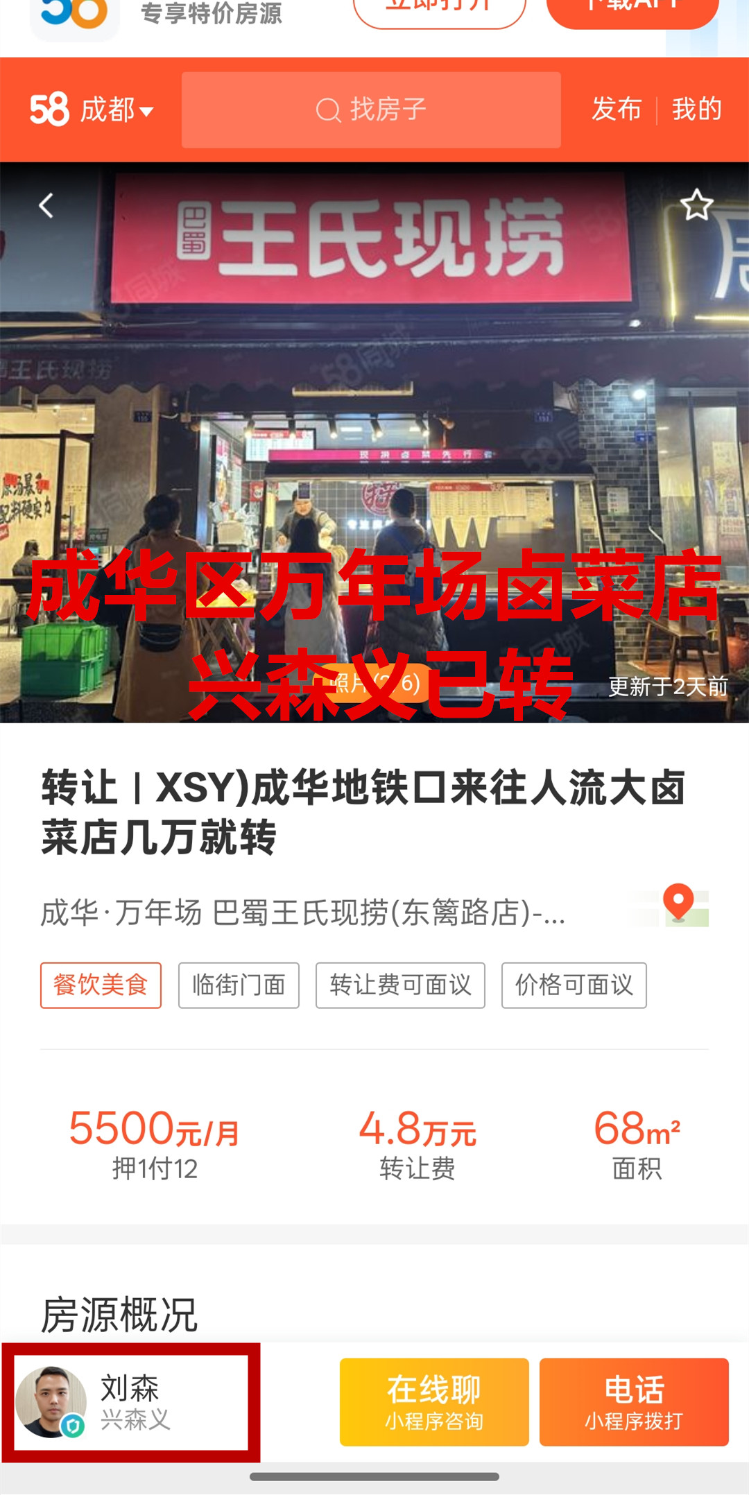 成华区万年场跳蹬河街道东篱路卤菜店已转让
