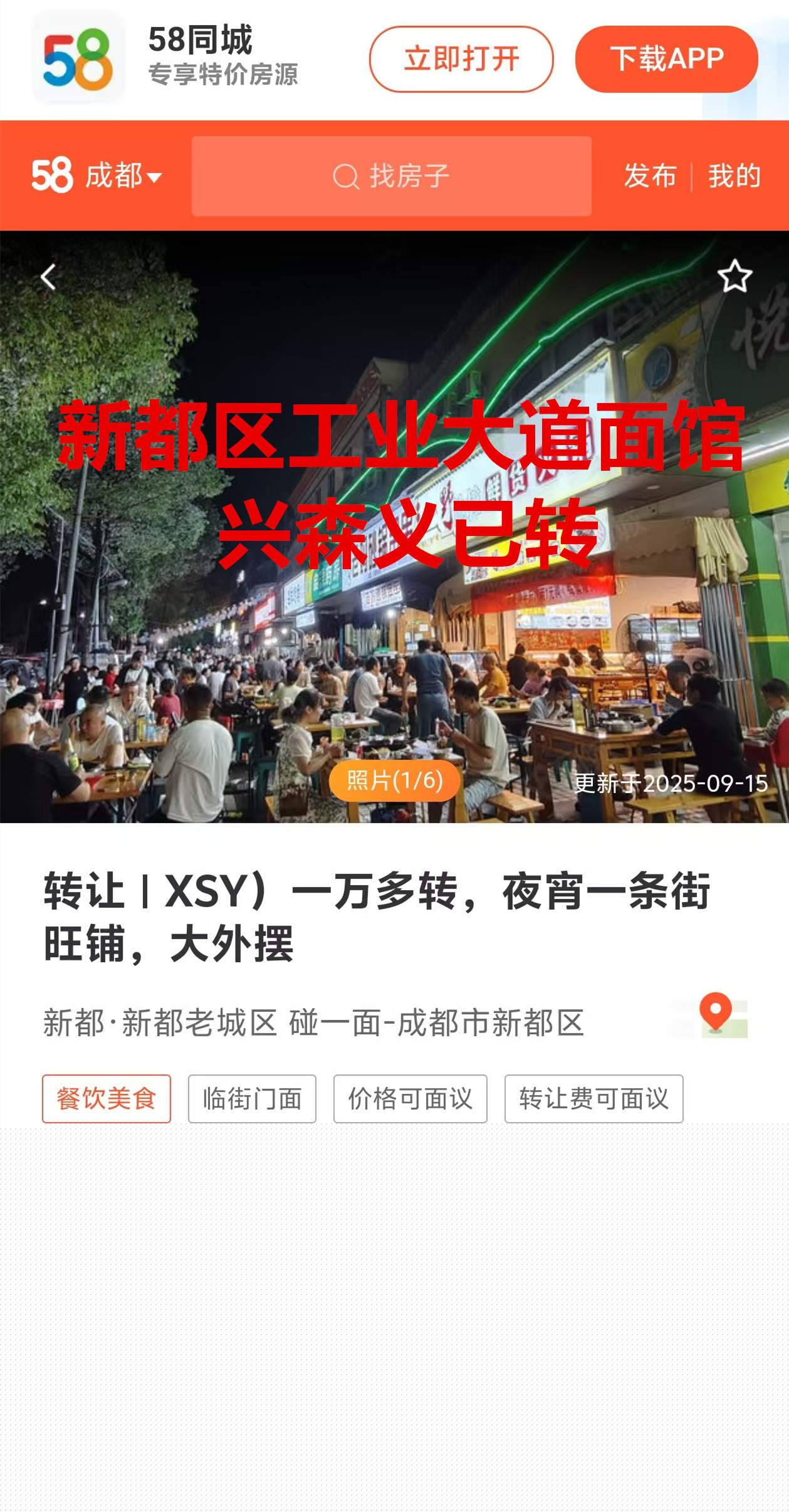 新都区桂湖街道工业大道面馆已转让