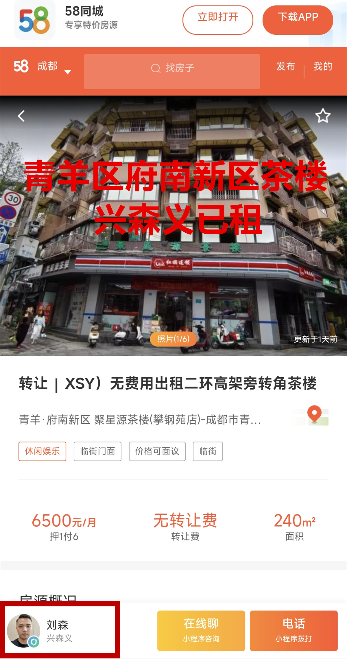 青羊区府南街道二环路西二段茶楼已转让
